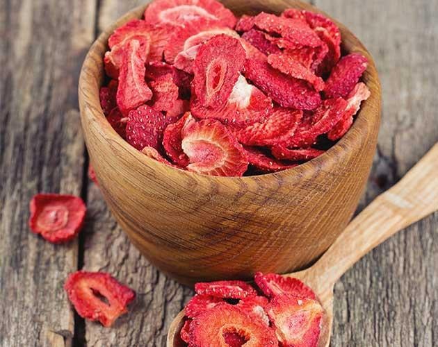 Сушеные травы и фрукты, такие как виноград, черника, клубника, манго, бананы, ананасы и киви.