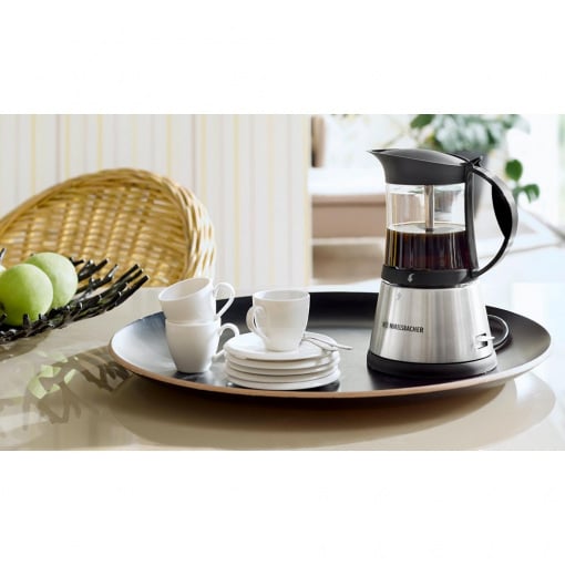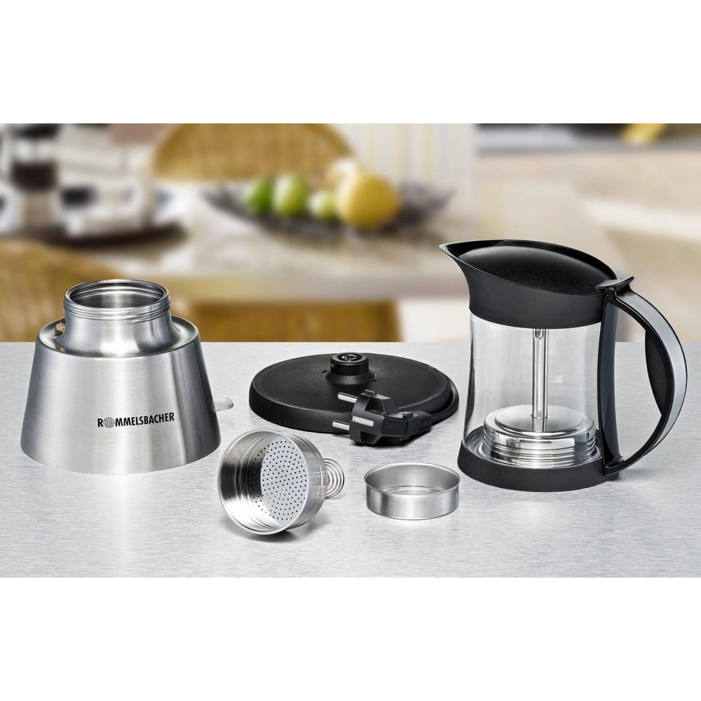Превосходная электрическая кофеварка для эспрессо ROMMELSBACHER с декоративным стеклянным кувшином не только притягивает взгляд, но и убеждает своим простым способом приготовления эспрессо традиционным способом. Элегантный дизайн и превосходные материалы, такие как высококачественная нержавеющая сталь и стекло, доводят устройство до совершенства. Прибор имеет встроенную систему подогрева, что позволяет использовать кофеварку эспрессо независимо от плиты. Независимо от того, приготовлено ли 6 чашек или 3 чашки эспрессо (входят в комплект поставки фильтрующие элементы), работать с ним легко и удобно. Просто засыпьте молотый эспрессо и залейте воду, поставьте кувшин на место, на базу питания, включите, и он заработает. Как только эспрессо будет готов, прибор автоматически выключится. Просто идеально!