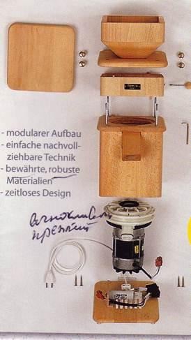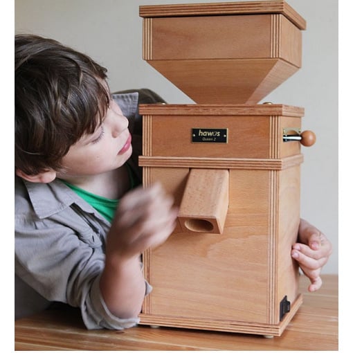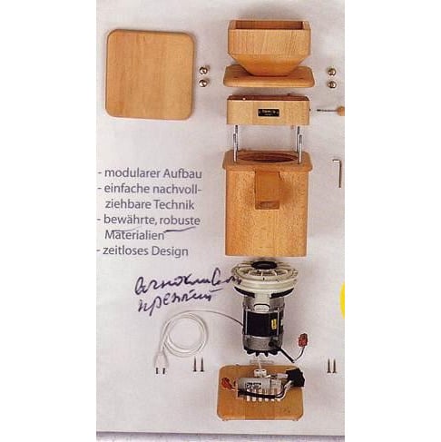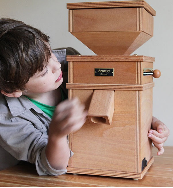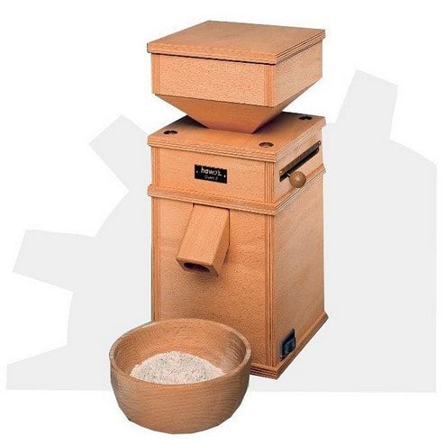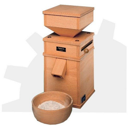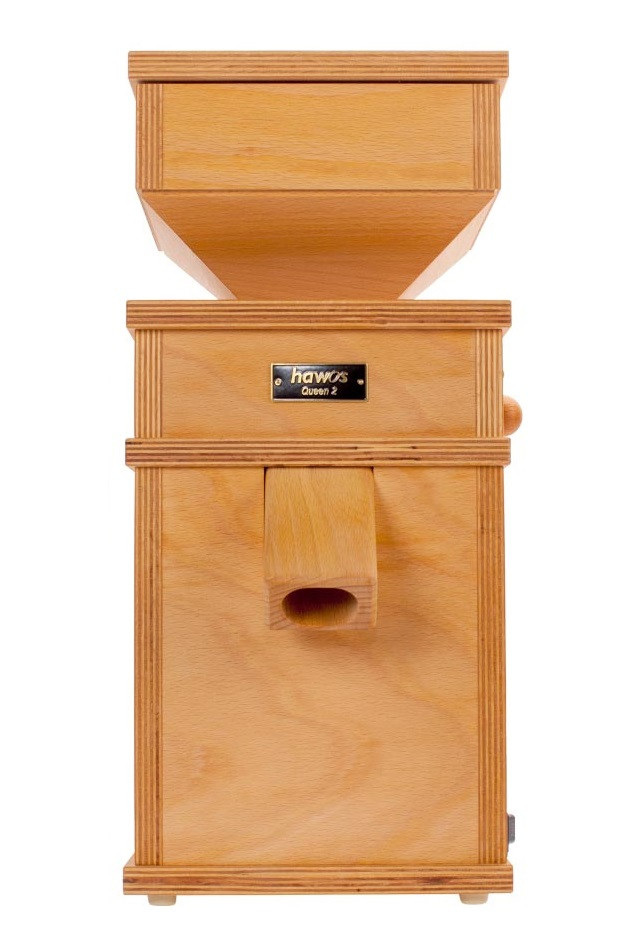 Hawos Queen 2 електричний домашній млин для борошна із зернових Корпус фанера з бука Оброблений олія льону Місткість бункера для зерна 1500 м Розміри, В x Ш x Г 450 x 210 x 210 мм Висота отвору виходу борошна 17 см Вага 10,6 кг Потужність при помелі: Дрібний 220 г/хв Грубий 450 г/хв Жорна Корунд-кераміка Діаметр 100 мм Мотор 230 Вольт - 600 Ватт 10 років гарантії на всі електричні мукомолки Hawos! Як і всі наші млини Queen проводиться в двох варіантах: Queen 1 для середньої потреби: 1 - 4 персон і для більшої потреби (велика родина або кухарські курси). Увага! Якщо Вам потрібна млин для виробництва свежесмолотой безглютенової муки, прохання повідомити про це нам при оформленні замовлення! Хороша кухня починається з хороших компонентів. Бездоганне походження продуктів і їх свіжість завжди мають попит. Чим свіже, тим краще. Це стосується борошна, круп і дерті - борошна грубого помелу. Злакове зерно багате вітамінами, мінеральними речовинами, протеїнами, ненасиченими кислотами. Нескінченно тонкі смакові нюанси надають кожному виду злаків свій певний характер. Перемелене зерно втрачає з часом цінні вітальні і ароматні речовини. Цей процес починається безпосередньо після перемелювання. Той, хто хоче повністю і по-справжньому насолодитися результатом своєї мистецтва приготування, повинен брати улюблені зерна і перемелювати їх сам. Випічка і свежесмолотой борошна - це насолода. Все це можливо з зерновими млинами від фірми hawos. Спробуйте! Мелють і насолоджуйтеся. Ваш Ральф Пигге. Директор фірми hawos Фірма hawos є провідним виробником електричних млинів, які застосовуються в домашньому господарстві, а також, для громадського користування, наприклад в магазинах. Серцем кожної млини hawos є сильний індустріальний мотор потужністю 360 W і навіть потужніше (600 W) . Надзвичайно великі жорна (перемалывающие навіть маленькі камені) виготовлені з кераміки і корунду. На добре осяжній шкалою можна встановлювати ступінь помелу. Результат подрібнення напевно буде відповідати вашим бажанням. Завдяки ремісничої точності і розвиненою техніці, кожна млин фірми hawos має 10 років гарантії. Все одно, яку з них ви зважитеся купити. Якщо ви будете мати млин фірми hawos,- то будете щасливі. Найкращою є млин з кам'яними жорнами. Кам'яні жорна - перевірені часом. Вже багато століть зерно перетворюється в муку між двома каменями. При цьому злакові зерна очищаються зовні, а всередині щадяще перемелюються. Твердість і структура каменів позначаються на результаті перемелювання. Перемалывающие камені фірми hawos були спеціально виготовлені зі сплаву металу і корунду. Вони надзвичайно стійкі, не чутливі до чужорідним тельцям (наприклад, до маленьких камінчиків) і майже не зношуються. Завдяки точно спланованою обробці, камені фірми hawos перемелюють зерно з неймовірною точністю: згідно установці на шкалі апарату, - від грубого помелу до дрібного. Всі електричні млини фірми hawos зроблені за одним принципом: Кришка, місткий бункер для зерна. Корпус з дерева; всередині, по гігієнічним задля забезпечення, камера помелу виготовлена з пластмаси. Сильний індустріальний мотор з системою захисту від перегріву. Еластично розташовується камера помелу з надзвичайно великими жорнами зі сплаву металу і корунду. Добре осяжна шкала і регулювальна ручка, встановлює ступінь помелу. Зерно на кухні Гречана крупа для млинців, ячмінь для каші
