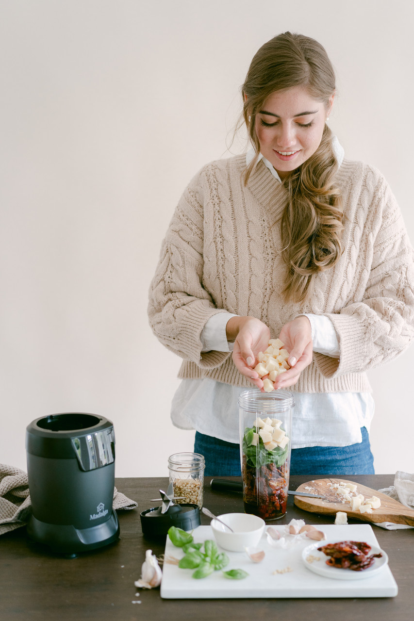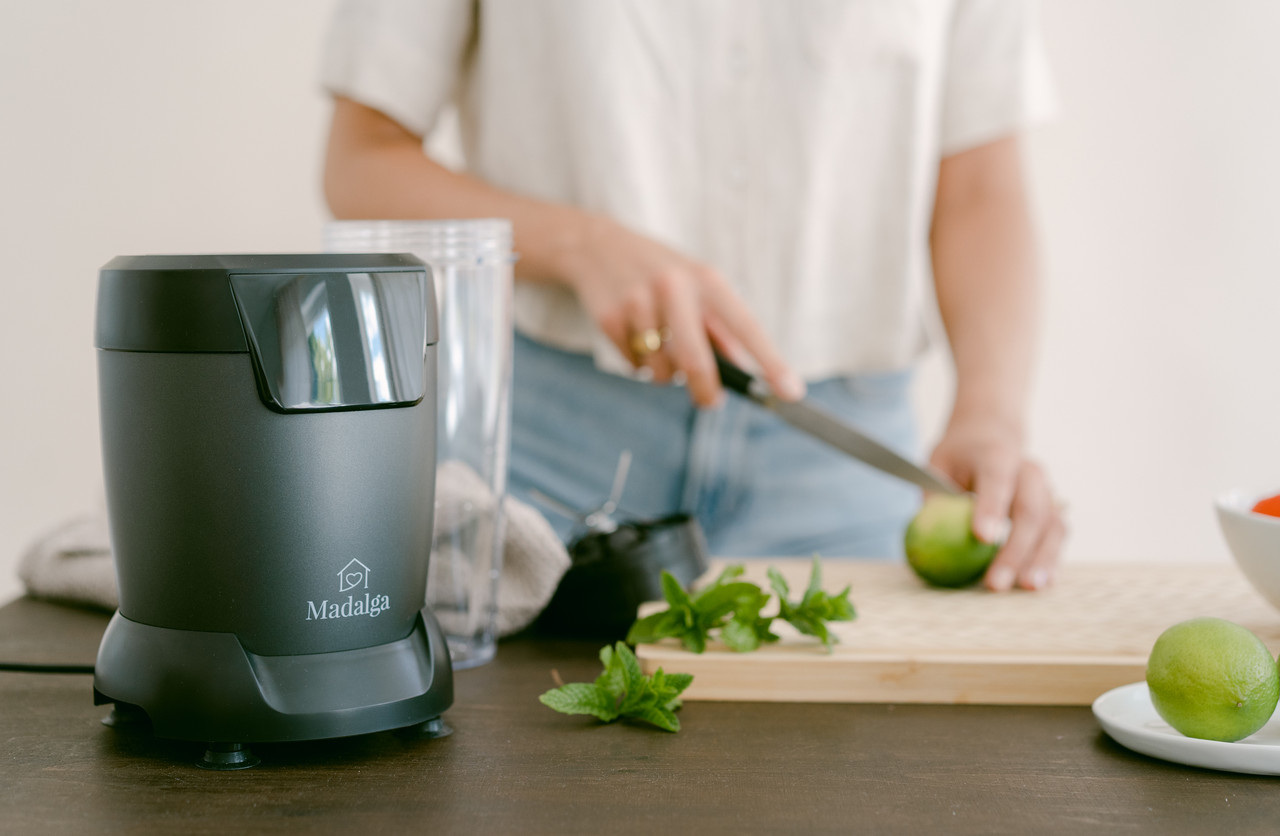 Персональний блендер Madalga PB-1200 Професійна потужність 1200 Вт 2 баночки з тритану, без BPA (1 літр та 0,8 літра) Леза з нержавіючої сталі з титановим покриттям ідеально підходять для приготування соку, подрібнення та змішування. Легко знімається для практичного очищення Професійні леза подрібнюють кубики льоду, горіхи, насіння, спеції та сушені трави до однорідної консистенції. Відмінно підходить для вилучення поживних речовин та вітамінів Персоналізовані напої на ходу Персональний блендер Madalga PB-1200 Compact із чашкою To Go, швидкий та простий у використанні. Сучасний, компактний, з чашкою To Go, швидко та легко керується за допомогою сенсорного дисплея. Компактний персональний блендер Madalga PB-1200 переконує своєю потужністю 1200 Вт і оснащений лезом для вилучення, яке перетворює навіть найтвердіші та волокнисті продукти на ідеальні смузі або коктейлі. Але персональний блендер Madalga також демонструє свою силу, коли справа доходить до подрібнення та переробки рису, кавових зерен або злаків на борошно тонкого помелу. Madalga PB-1200 – це більше, ніж смузі: змішуйте або подрібнюйте, ви можете створювати нескінченні рецепти, такі як соуси, коктейлі чи холодні супи/соуси. Нажмите, поверните, смешайте Простое и интуитивно понятное управление приносит удовольствие в повседневную жизнь на кухне. Вовлеките своих детей, будь то фруктовые коктейли или пряный гуакамоле, им так легко помочь и приготовить здоровую пищу. ЛЕГКА ОЧИЩЕННЯ Просто викрутіть лезо з контейнера та промийте під краном. Наші контейнери та кришки можна мити у посудомийній машині. TO-GO Змішуйте протеїнові коктейлі або смузі прямо в чашці із собою. Кришка, що входить в комплект, робить це можливим. Перемішайте, накрийте кришкою і вирушайте в спортзал або довгий похід. ХАРАКТЕРИСТИКИ професійна потужність 1200 Вт 2 баночки з тритану, без BPA (1 літр та 0,8 літра) Леза з нержавіючої сталі з титановим покриттям ідеально підходять для приготування соку, подрібнення та змішування. Легко знімається для практичного очищення Професійні леза подрібнюють кубики льоду, горіхи, насіння, спеції та сушені трави до однорідної консистенції. Відмінно підходить для вилучення поживних речовин та вітамінів Персоналізовані напої на ходу 2 роки гарантії виробника ВКЛЮЧЕНО У ПОСТАЧАННЯ 1 х Моторна база 1 х 1 л чашка 1 х чашка 0,8 л 1 х лезо 1 х відкидна кришка 1 х кришка для зберігання Інструкція з експлуатації