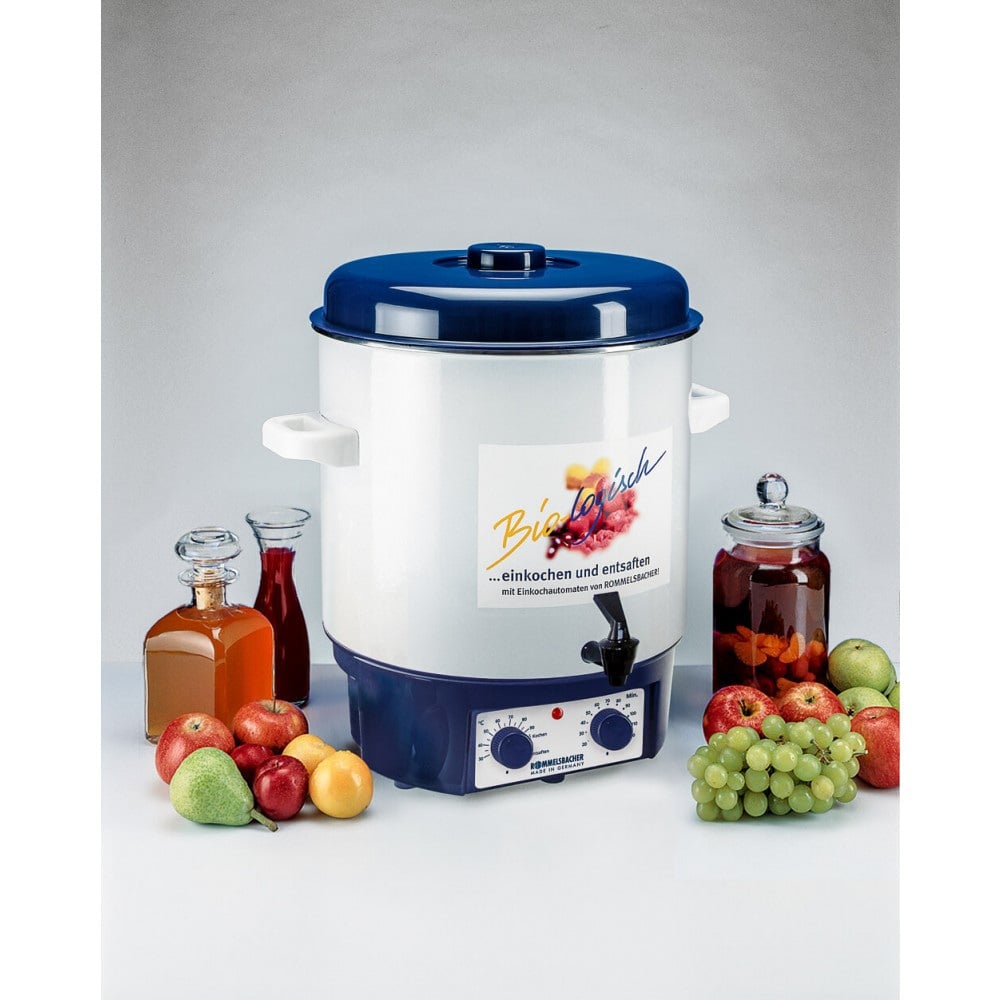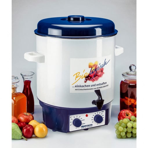 Апарат для гарячих напоїв/консервації Rommelsbacher KA 1804 Глінтвейн-мейкер Rommelsbacher KA 1804 Колір продукту білий / синій Матеріал корпусу вогнетривкий Габаритні розміри 46,00 х 41,50 х 49,00 см Вихід 120-хвилинний таймер Місткість 27 л або 14 банок по 1 л в кожній Особливості вбудований прецизійний термостат для постійної температури Виробник: Rommelsbacher Країна виробництва: Німеччина Гарантія: 24 міс Професійне консервування - фрукти, овочі та багато іншого надійно консервуються пуншу / консервування з випускним краном чудова зносостійка каструля з кислотостійкою двошаровою емаллю і ободом з нержавіючої сталі місткість: 27 л або 14 банок по 1 л кожна безступінчасте регулювання температури установка для віджиму соку приготування для автономного керування процесом консервування 120-хвилинний таймер, налаштування безперервної роботи утеплені ручки, кришка, що знімається, закрите дно каструлі для легкого очищення контрольна лампа, захист від перегріву, натягувач шнура У тому числі: вставка сітки Консервувати можна все ! За допомогою цих практичних консервоварок фрукти, овочі, соки та варення можна зручно та корисно консервувати. Взимку вони ідеально підходять для подачі гарячого глінтвейну або пуншу. Встановлена температура надійно підтримується прецизійним термостатом, а у моделях з розливним краном напої можна зручно розливати у чашки. Консервні плити Rommelsbacher також використовуються для підтримки тепла у великих кількостях продуктів на урочистості та заходи. Ще одна перевага: разом з кришкою для віджиму соку (тип EA 1803), доступною як аксесуар, їх також можна використовувати як парові соковитискачі.