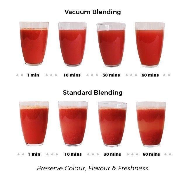 Вы сразу заметите преимущества взбивания в вакууме с помощью вакуумного блендера Astro от BioChef. Обычный домашний миксер будет взбивать, выдувая много воздуха в ваши компоненты во время процесса смешивания. Эти пузырьки воздуха могут создать тонкий и безвкусный многослойный напиток. Удалив воздух из ваших ингредиентов перед взбиванием, блендер BioChef Astro создаст фруктовый коктейль заметно более яркого цвета с более мягкой консистенцией, который дольше сохраняет свой свежий вкус. Водорастворимые витамины, такие как комплекс витаминов группы В и витамин С, также быстро теряются при окислении. Уменьшите его с помощью вакуумного блендера Astro от BioChef - это лучший способ сохранить эти необходимые питательные вещества.