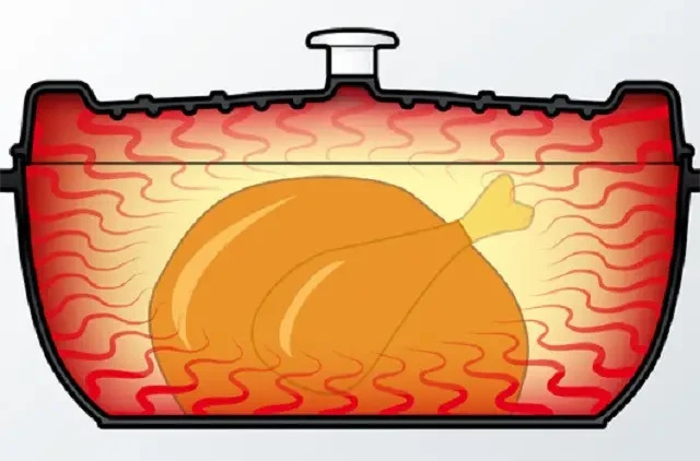 Завдяки низькій теплопровідності чавуну, посуд порівняно повільно нагрівається. Рівномірне об'ємне прогрівання та довге збереження тепла забезпечують неперевершений результат і дивовижний смак ваших страв.