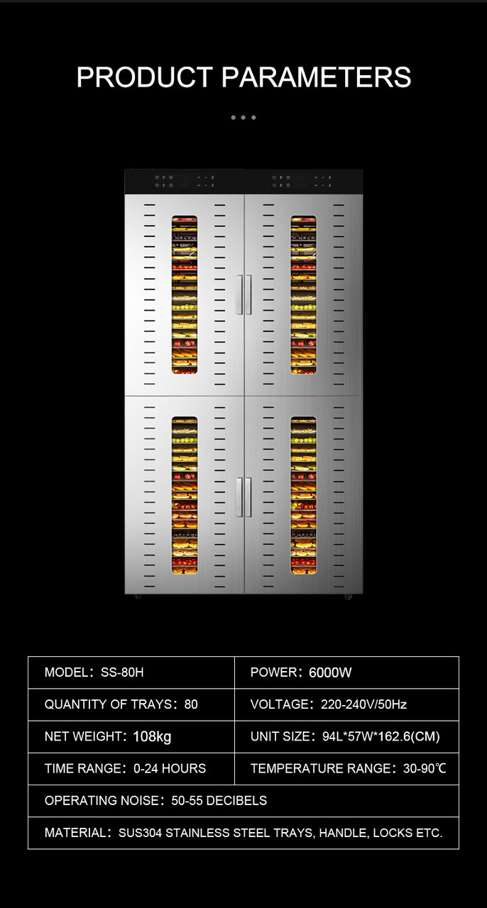 Дегідратор комерційний Tekhniko DH-80H-SS нержавіюча сталь (80 лотків)
