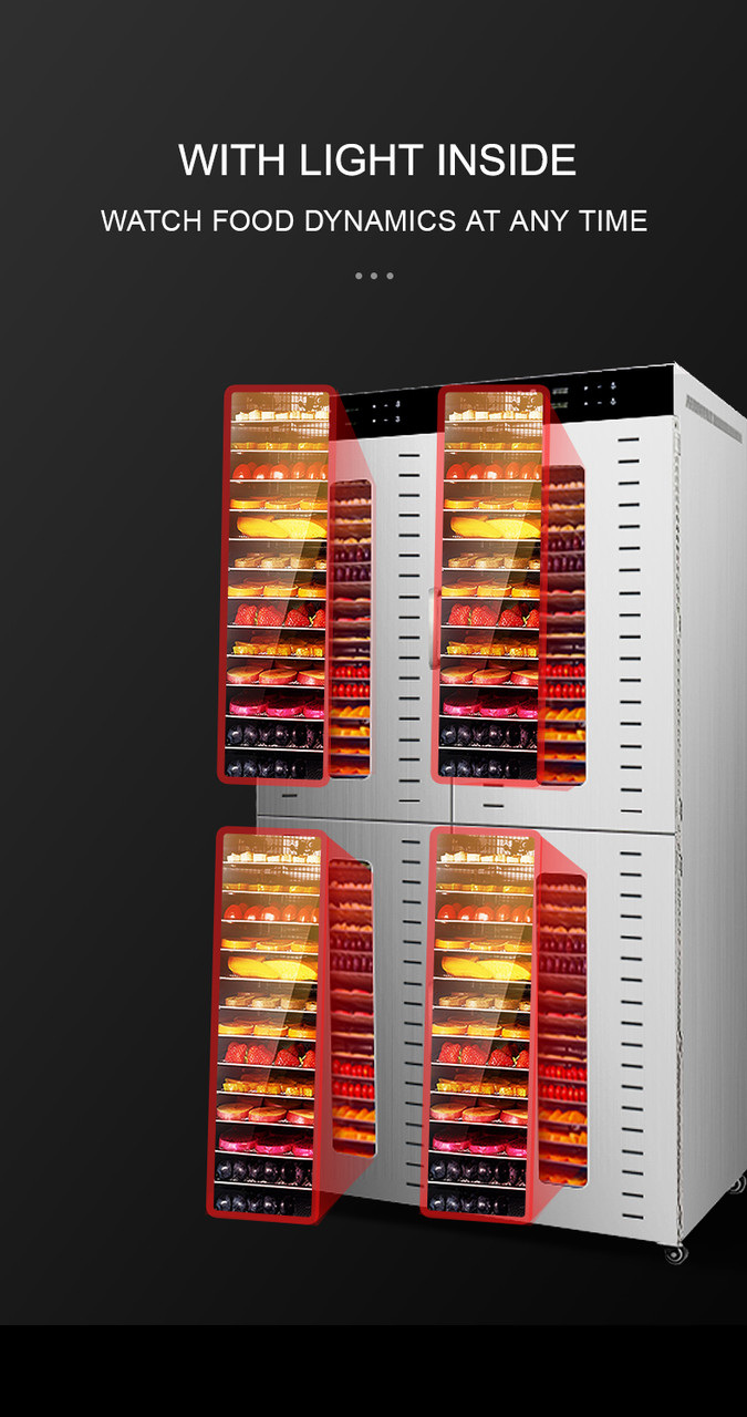 Дегідратор комерційний Tekhniko DH-80H-SS commercial (80 лотков), нержавіюча сталь Комерційний дегідатор Tekhniko DH-80H-SS commercial (80 лотків) Модель: DH-80H-SS Колір: нержавіюча сталь Потужність: 6000 Вт (max) Номінальна потужність: 4800 Вт Кількість лотків: 80 шт Розмір лотка: 40*38 см Висота між лотками: 35 мм Місткість сирих продуктів на 1 лотку: ~ 1,5 кг Загальна місткість сирих продуктів: ~ 120,0 кг Напруга: 220-240 В, 50 Гц Температура: 30~90°C (крок 5°C) Таймер, діапазон часу: 0-24 години (крок 30 хв) Рівень шуму: 50-55 дБ Розмір: Ш 94,0 * Г 57,0 * В 162,6 см (без коліс) Вага: 108,0 кг Габарити упаковки: - 101*66*178,6 см (зовнішня дерев'яна упаковка) Вага з упаковкою: - 167,0 кг (зовнішня дерев'яна упаковка) Гарантія: 12 міс Особливості: 12 вентиляторів - горизонтальна система сушки 4 незалежних відсіка (3 вентилятора на кожен відсік) Світлодіодний дисплей Двухшаровий корпус із нержавіючої сталі Внутрішня світлодіодна підсвітка Оцінкований піддон для крохт і води - 4 шт Магнитные замки двери 4 транспортировочных колеса Лотки з нержавіючої сталі SUS304 Корпус із нержавіючої сталі SUS201 Алюмінієва ручка Властивості: 80 лотків великої ємності, вміщують до 120 кг свіжих продуктів 12 двигунів + 12 системи сушки лопастним вентилятором - кращий ефект і більш висока ефективність Горизонтальная равномерная сушка Розмір лотків становить 400 X 380 мм, а зазор (висота) між двома лотками становить 35 мм Прозоре закаленное скло, зручно для спостереження за сушкою всередині Можливість сушити всі види фруктів, овочів, м'яса, риби, морепродуктів, злаків, трав, бобів, закусок та ін. д Точне цифрове управління, простота в експлуатації, низький рівень розміру деталей Корпус з нержавіючої сталі SUS201 товщиною 0,6-0,8 мм, лотки з нержавіючої сталі SUS304 Комплектація: Дегідратор Техніко DH-80H 80 лотків із нержавеючої сталі 4 піддона для сбору води и крихт Книга рецептів (укр.язык) Інструкція (укр.язык) Гарантійний талон
