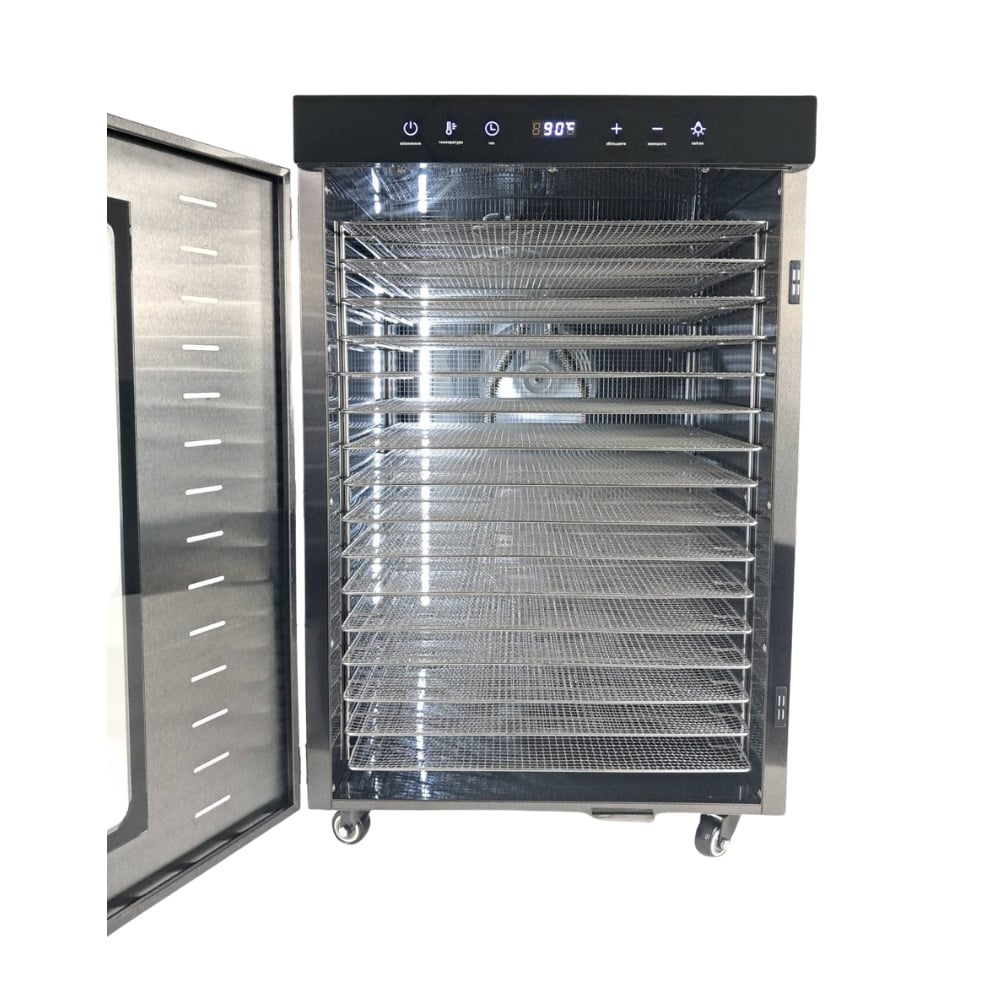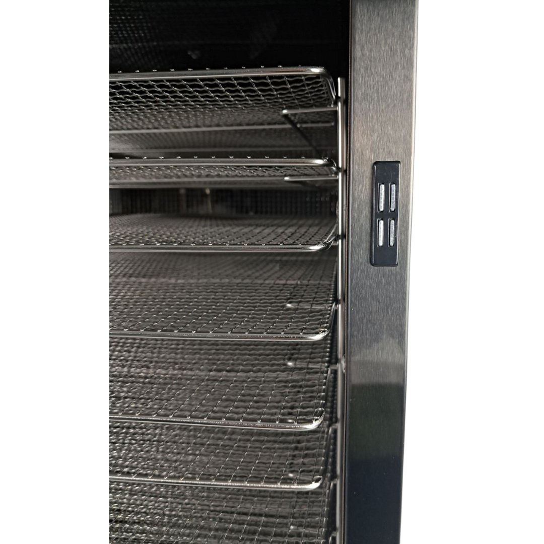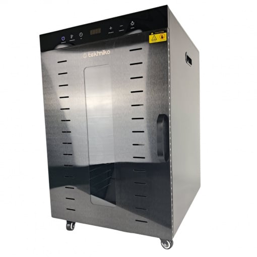 Дегідратор комерційний Tekhniko DH-16H-BK чорний (16 лотків) Комерційний дегідратор Tekhniko DH-16H-BK commercial (16 лотків) Модель: DH-16H-BK Колір: чорний Потужність: 1500 Вт (max) Номінальна потужність: 120 : 16 шт Розмір лотка: 40*38 см Висота між лотками: 35 мм Місткість сирих продуктів на 1 лотку: ~ 1,5 кг Загальна місткість сирих продуктів: ~ 24,0 кг Напруга: 220-240 В, 50 Гц Температура: 30 ~90°C (крок 5°C) Таймер, діапазон часу: 0-24 години (крок 30 хв) Рівень шуму: 50-55 дБ Розмір: Ш 46,5 * Г 57,0 * У 67,0 см (без коліс) Вага: 24,0 кг Габарити упаковки: Ш 54*Г 64* В 74,5 см Вага з упаковкою: 29 кг Гарантія: 12 міс Особливості: 2 вентилятори Світлодіодний дисплей Двошаровий корпус з нержавіючої сталі Внутрішнє світлодіодне підсвічування Оцинкований піддон і води Магнітні замки дверцята 4 транспортувальні колеса Лотки із нержавіючої сталі SUS304 Корпус із нержавіючої сталі SUS201 Алюмінієва ручка Властивості: 16 лотків великої ємності, вміщує 24 кг свіжих продуктів. 2 двигуни + 2 системи сушіння лопатевим вентилятором - кращий ефект та більш висока ефективність. Розмір лотків становить 400 X 380 мм, а зазор (висота) між двома лотками становить 350 мм. Прозоре загартоване скло зручне для спостереження за сушінням усередині. Можливість сушити всі види фруктів, овочів, м'яса, риби, морепродуктів, злаків, трав, бобів, закусок і т.д. Точне цифрове керування, простота експлуатації, низький рівень зносу деталей. Корпус з нержавіючої сталі SUS201 товщиною 0,6-0,8 мм, лотки з нержавіючої сталі SUS304 Комплектація: Дегідратор Tekhniko DH-16H 16 лотків з нержавіючої сталі Піддон для збору води та крихт Книга рецептів (укр.мова) Інструкція ) Гарантійний талон