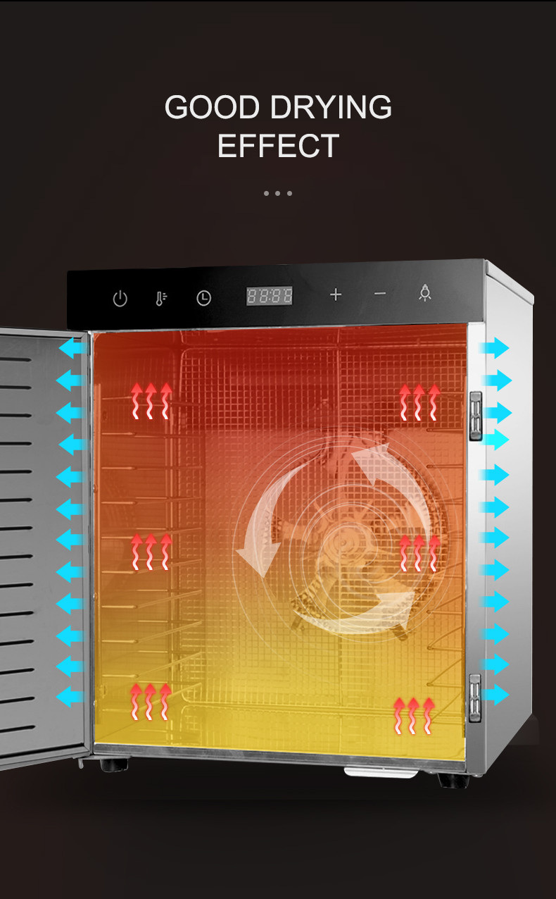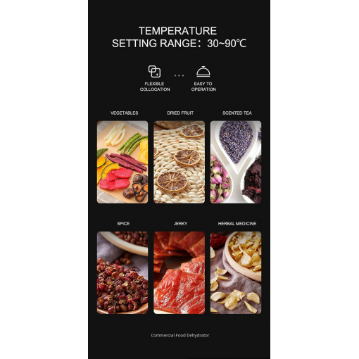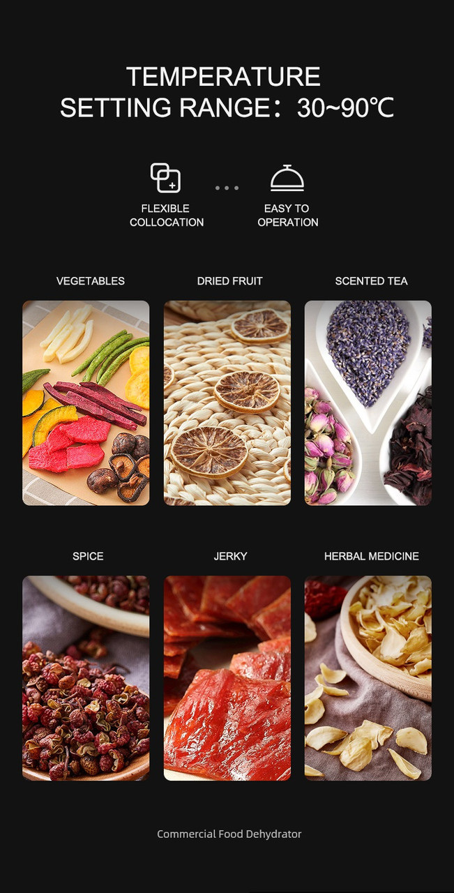 Можливість сушити всі види фруктів, овочів, м'яса, риби, морепродуктів, злаків, трав, бобів, закусок тощо.