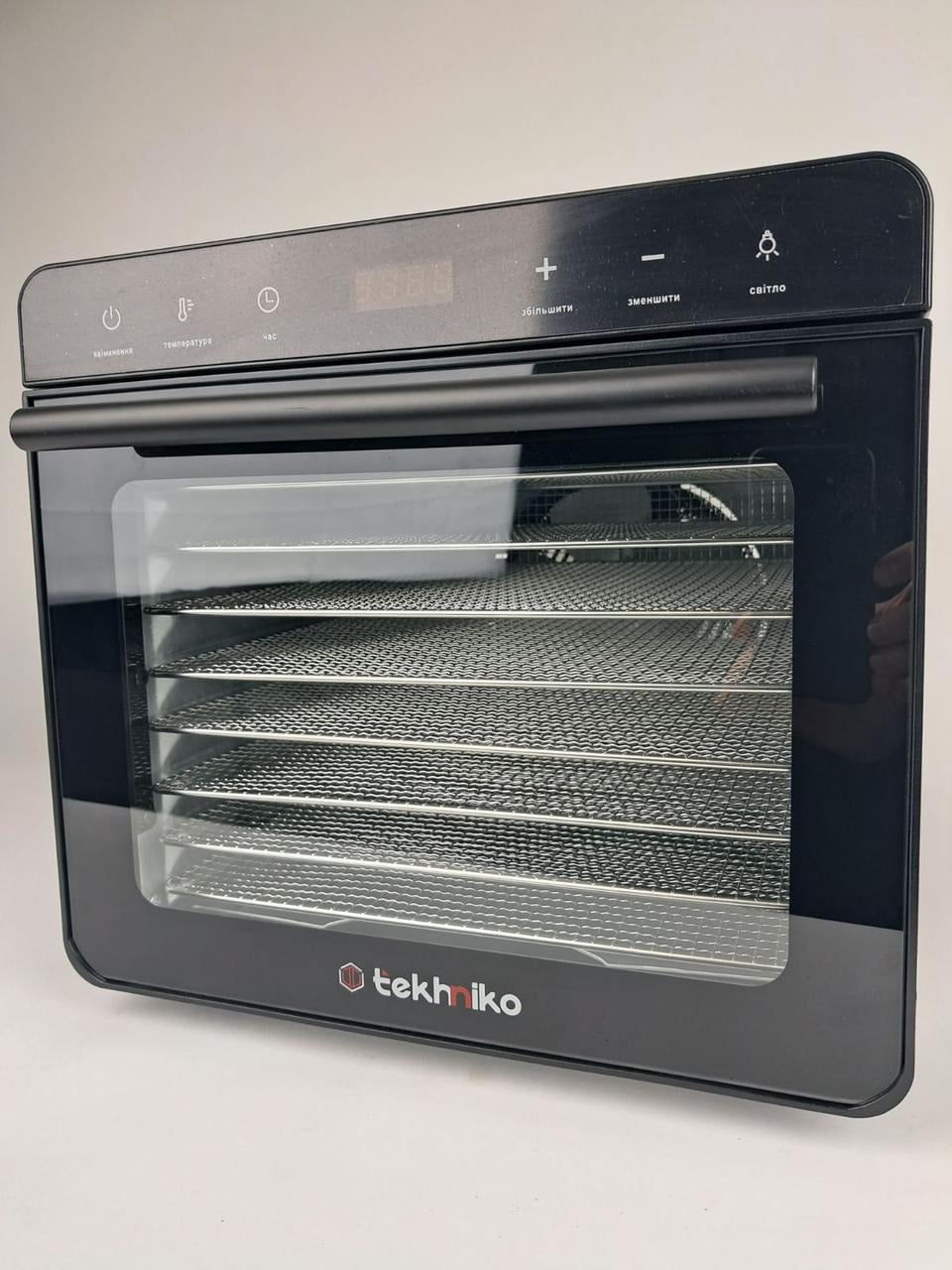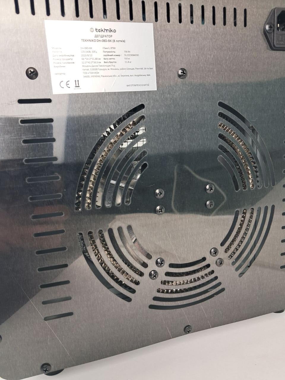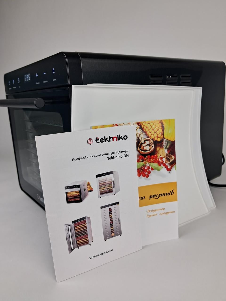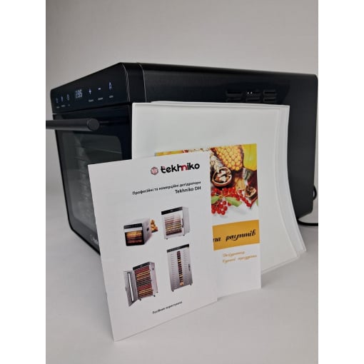 Дегідратор професійний Tekhniko DH-08D-BK чорний (8 лотків) Професійний дегідратор Tekhniko DH-08D-BK чорний (8 лотків) Модель: DH-08D-BK Колір: чорний Потужність: 700 Вт (max) Номінальна потужність: 560 Вт Кількість : 8 шт Висота між лотками: 25 мм Місткість сирих продуктів на 1 лотку: ~ 0,5 - 0,8 кг Загальна місткість сирих продуктів: ~ 5 - 6,5 кг Розмір лотка: 30*28 см Напруга: 220-240 В , 50 Гц Температура: 35~85°C (крок 5°C) Таймер, діапазон часу: 0-24 години (крок 30 хв) Рівень шуму: 45-50 дБ Розмір: 45*34*31,8 см Вага: 9 ,5 кг Габарити упакування: 54*40*36 см Вага з упаковкою: 11,5 кг Гарантія: 12 міс. Особливості: Світлодіодний дисплей Сенсорне управління Двошаровий корпус з нержавіючої сталі Внутрішнє світлодіодне підсвічування Оцинкований піддон для крихт і води Магнітний замок дверцята Лотки з нержавіючої сталі SUS304 Корпус з нержавіючої сталі SUS201 е до 6,5 кг свіжих продуктів. 1 двигун + 1 система сушіння лопатевим вентилятором - найкращий ефект та більш висока ефективність. Розмір лотків становить 300 X 280 мм, а проміжок (висота) між двома лотками становить 25 мм. Прозоре загартоване скло зручне для спостереження за сушінням усередині. Можливість сушити всі види фруктів, овочів, м'яса, риби, морепродуктів, злаків, трав, бобів, закусок і т.д. Точне цифрове керування, простота експлуатації, низький рівень пошкодження деталей. Корпус з нержавіючої сталі SUS201 товщиною 0,6–0,8 мм, лотки з нержавіючої сталі SUS304 Комплектація: Дегідратор Tekhniko DH-08D-BK чорний 8 лотків з нержавіючої сталі 2 шт - Килимок силіконовий для пастили Tekhniko Силіконовий тримач-прихватка Tekhniko HotHand HH-200 Піддон для збору води та крихт Книга рецептів (укр.мова) Інструкція (укр.мова) Гарантійний талон