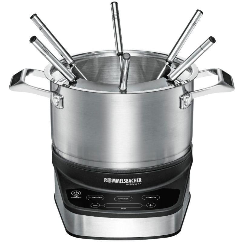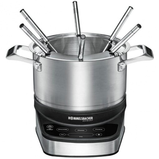 Електричне фондю Rommelsbacher F 1200 Тип F 1200 Колір продукту нержавіюча сталь / чорний Матеріал корпусу нержавіюча сталь Вихідна потужність 230 В 1200 Вт Вага предмета 2,26 кг Розміри 27,00 х 29,00 х 23,50 см Rommelsbacher Країна: Німеччина Гарантія: 24 міс Точний за температурою, якісний та безпечний Переваги фондю Rommelsbacher F 1200 - ідеально підходить для всіх видів фондю (шоколад, сир, олія, бульйон) - міцний корпус з матової нержавіючої сталі - нагрівальна пластина Ø 17 простим у догляді антипригарним покриттям - панель керування для регулювання та контролю температури за допомогою зручних сенсорних датчиків - 3 програми з електронним регулюванням, дуже висока точність температури (від 35°C до 190°C) - перевірено на безпеку: знак якості GS TÜV SÜD - висока експлуатаційна безпека за рахунок захисту від перегріву, звукових сигналів та індикації залишкового тепла - каструля, що знімається, з нержавіючої сталі об'ємом 2,5 літра (корисний об'єм 1,2 літра) - наддовгий шнур живлення, прибл. 2 м. У комплекті: вставка з нержавіючої сталі із захистом від бризок з вилкою, 6 виделок для фондю із нержавіючої сталі з бірками Високоякісні технології поєднуються із сучасним дизайном. Цей привабливий набір для електричного фондю переконує найкращими якостями інтер'єру та екстер'єру. Це фондю з чутливим електронним контролем температури забезпечує дуже високу точність температури і тому ідеально підходить для всіх типів фондю: для фондю з олією та бульйоном, а також для ніжного сирного або шоколадного фондю. На вибір пропонуються три програми, рівні температури яких можна налаштувати індивідуально. Управління через сенсорні датчики управління та найкраща для користувача система освітлення забезпечують безпечне та просте звернення. А також, крім цього, максимальна безпека. М'які звукові сигнали, обмеження по часу роботи, індикація залишкового тепла, а також безпечне поєднання каструлі та електричної плити. Це фондю стане новою зіркою нашої наступної вечірки з фондю!