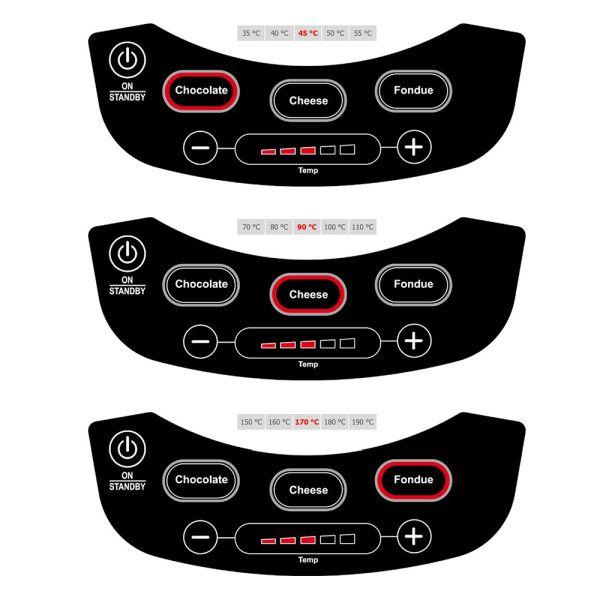 На вибір пропонуються три програми, рівні температури яких можна налаштувати індивідуально. Управління через сенсорні датчики управління і найкраща для користувача система освітлення забезпечують безпечне і просте звернення. А також, крім цього, максимальна безпека. М'які звукові сигнали, обмеження часу роботи, індикація залишкового тепла, а також безпечне поєднання каструлі і електричної плити.. Комфорт зберігається навіть після насолоди фондю: Нержавіюча сталь, що не вимагає особливого догляду, і нагрівальна пластина з покриттям дуже легко чиститься!.