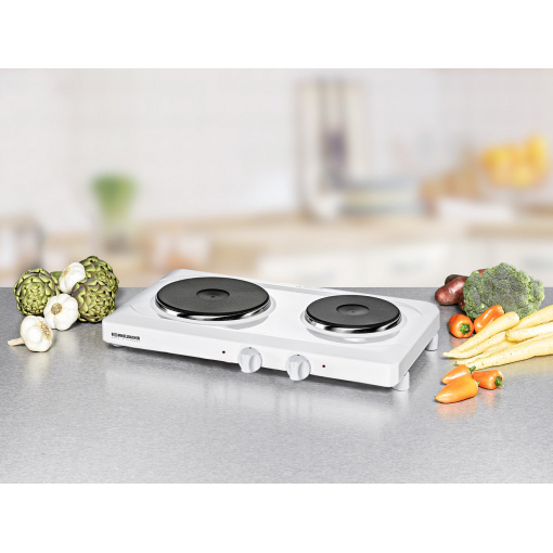 Ідеально підходить як додатковий пристрій на кухні, ідеально підходить для офісу або дави, для підвалів або розмовок. Ця подвійна панель відрізняється дуже красивим дизайном, функціональністю і високою простотою використання. Довговічні нагрівальні пластини з справжнього чугуна підходять для всіх видів посуду і забезпечують оптимальний розподіл тепла. Завдяки автоматичній системі приготування тарілки нагрівають кожен рівень на повну потужність. Форма корпусу має чудове вогнестійке покриття і, таким чином, залишається міцно білим навіть після тривалого використання. Ця плита для приготування їжі - правильний вибір для економних і, тим не менш, розбірливих клієнтів