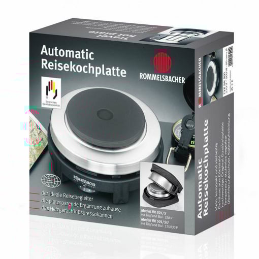 Електроплита туристична з каструлею Rommelsbacher RK 501/S TRAVEL HOT PLATE RK 501/S Колір продукту нержавіюча сталь/чорний Матеріал корпусу нержавіюча сталь/пластик Вихідна потужність 230 В 500 Вт Вага предмета 0,98 кг Габаритні розміри 13,50 см Варильна панель нагрівальна плита з чавуну Зони приготування 1 Зона приготування 1 Ø 80 мм, 500 Вт В комплект входить алюмінієва каструля з антипригарним покриттям (0,9 л) і гумові ніжки, що не ковзають, для надійної роботи. Виробник: Rommelsbacher Країна виробник: Німеччина Гарантія: 24 міс Найменша електрична плита "Зроблено в Німеччині" - ідеальний компаньйон як вдома, так і в подорожі. чудовий корпус з нержавіючої сталі та пластику в зручному розмірі міцна нагрівальна плита з чавуну: зона нагріву Ø 80 мм безступінчасте регулювання температури з автоматичною системою приготування та захистом від перегріву нековзні гумові ніжки вбудований натягувач шнура Дорожній комплект в поєднанні ,9 л) - практичний кейс на блискавці для компактного зберігання Маленькі, компактні, портативні - зручні дорожні конфорки легко складаються, тому їх можна використовувати в будь-якому місці в найкоротші терміни. Незалежно від того, подорожуєте ви на відпочинку або у вихідні - ця чудова невелика дорожня плита стане вашим зручним супутником у подорожі. Нагрівальний елемент оснащений міцною чавунною нагрівальною пластиною з безступінчатим регулюванням температури, автоматичною системою приготування та захистом від перегріву. Ідеальна технологія для приготування невеликої кількості їжі або напоїв у дорозі, а також для розігріву або збереження невеликих теплих страв будинку. Конфорка разом із легкою алюмінієвою каструлею упакована у зручний футляр на блискавці.