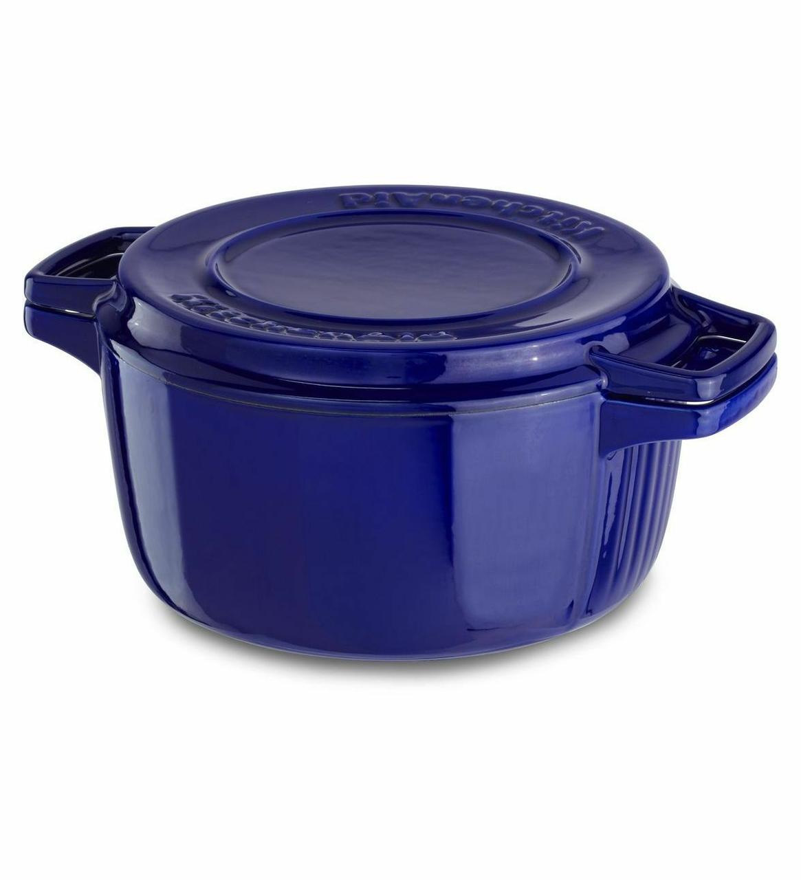 Каструля з кришкою-гриль, чавунна KitchenAid CPI60CRFUCast Iron, об'єм 3,8 л, діаметр 24 см, колір темно-синій