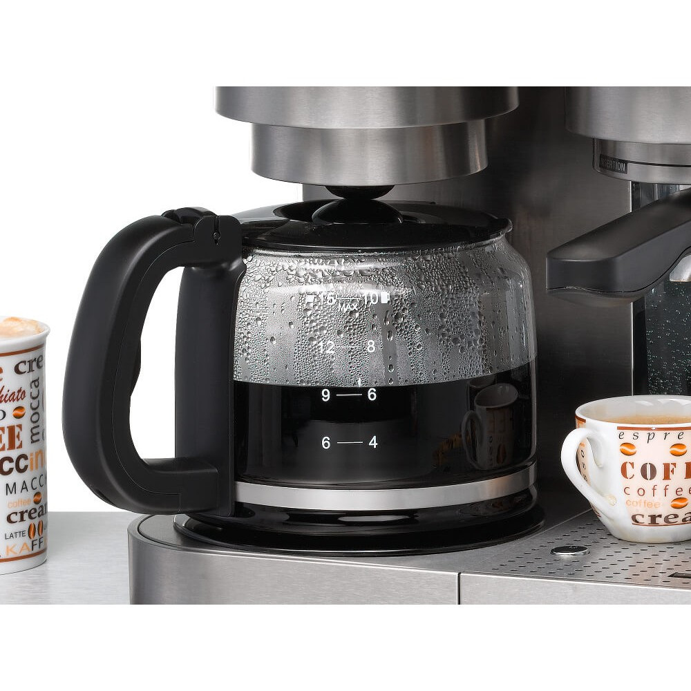 Кавова машина-кавоварка Rommelsbacher EKS 3010 Матеріал корпусу нержавіюча сталь Матеріал термоблока Литий під тиском алюміній Помпа ULKA (Італія) Вихідна потужність 2225 Вт Вага предмета 7,7 кг Габаритні розміри 37,5 х 27,5 х 33,0 см Ємність накопичувача 1,5 літра Водяний фільтр замінний Сопло для гарячої води / пари нержавіюча сталь Кавовий фільтр Доповнення декоративний скляний глек на 10 чашок кави, зйомний фільтруючий елемент 1 x 4, протикапельна система, Капучинатор Обладнання По 1 фільтруючому вкладишу з нержавіючої сталі для 1 і 2 чашок, мірна ложка з штовхачем Виробник: Країна: Німеччина Гарантія: 24 міс (офіційна в Україні) Переваги: Корпус з нержавіючої сталі Термоблок — литий алюміній Тиск 19 бар, помпа ULKA (Італія) Попереднє змочування кави Резервуар для води — 1,5 (знімний) Електронний контроль рівня води Настроювання об'єму заповнення чашки (50-150 мл/100-250 мл) Металева насадка Panarello для приготування капучіно Знімний піддон для збору крапель Металева решітка краплезбірника Майданчик для зберігання чашок Режим енергозбереження (вимк. через 8 хвилин) Приготування 1 або 2 чашок Світлова індикація режимів роботи Мережевий кабель: ок. 1 метра Для ароматної крапельного кави, еспресо з ідеальною пінкою, капучіно з ніжною молочною піною і багато чого іншого... Кавоварка: декоративний скляний глек на 10 чашок кави резервуар для води з індикатором рівня води знімна фільтруюча вставка 1 x 4, протівокапельная система струмінь душа для максимального аромату піднос для підігріву з автоматичним вимкненням автоматичне відключення еспресо: обладнання таке ж, як EKS 2010 Будь то запашну каву з пахучим ароматом, ароматний еспрессо з пінкою, капучино або чаю - цей центр кава еспресо найкращим чином виконує всі побажання і ідеально підходить для тих, хто хоче насолодитися різноманітністю кавових напоїв вдома або в офісі. Чудові матеріали і першокласні характеристики забезпечують ароматне кавове частування. За допомогою кавоварки у скляному глечику можна приготувати до 10 чашок кави крапельним. Фільтруючий вкладиш 1 x 4 з системою захисту від крапель і нагрівальна пластина з антипригарним покриттям і автоматичним відключенням забезпечують зручність використання. Еспрессо з пінкою ви можете зробити за 1 хвилину. Завдяки потужному насосу і чудовій термоблоку мелені зерна, а також капсули для еспресо / кави будуть перетворені у ароматні напої. За допомогою знімної насадки з нержавіючої сталі можна легко приготувати гарячу молочну піну і отримати гарячу воду для чаю. Ємність чашки програмується індивідуально. З твердим портафильтром можна приготувати 1 або 2 чашки в залежності від фільтруючого елемента. Змінний фільтр для води забезпечує хорошу якість води. Резервуар для води і піддон для збору крапель знімаються, тому їх легко чистити. Регульований по висоті кошик для чашок і зручна панель управління зі світлодіодними контрольними лампами забезпечують зручність використання. Чудовий, елегантний і універсальний - для професіоналів серед любителів кави!