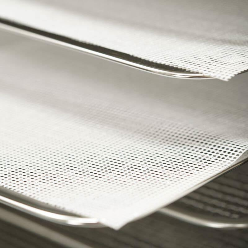 Килимок сітчастий силіконовий Tekhniko MSS-640 Технічні характеристики Модель: MSS-640 Тип: сітчастий силіконовий килимок для дегідратора Розмір: 38×40 см Діаметр отворів: 1 мм Матеріал: харчовий силікон Тип конструкції: багаторозовий Можна мити: так Призначення: не прилипає Сумісність: лотки розміром 40×38 см (дегідратори Tekhniko з лотками 40×38) Переваги • Оптимальний розмір 38×40 см — ідеально підходить для дегідраторів Tekhniko з лотками 38×40 см • Діаметр отворів 1 мм — забезпечує вільну циркуляцію повітря та рівномірне сушіння • Харчовий силікон — не вбирає запахи, витримує високу температуру, безпечний для продуктів • Гнучкий та зносостійкий — легко знімається, миється, швидко сушиться • Зручна структура — запобігає прилипанню навіть дрібних продуктів • Ідеальний для ягід, м’яса дрібними шматочками, зелені, трав, горіхів та ніжних продуктів • Легко чиститься — достатньо промити водою або помістити у посудомийну машину • Універсальне використання — підходить для дегідраторів, випікання, заморозки, сушіння пастили та снеків Опис Килимок сітчастий силіконовий Tekhniko MSS-640 — це якісне й практичне рішення для сушіння дрібних або ніжних продуктів у дегідраторі. Завдяки діаметру отворів 1 мм килимок забезпечує оптимальну циркуляцію повітря, запобігаючи випадінню ягід, насіння чи дрібнорізаних овочів через отвори лотків. Виготовлений із харчового силікону, він не вбирає запахи, стійкий до високих температур та легко очищується після використання. MSS-640 підходить для сушіння зелені, трав, ягід, риби, м’яса дрібними шматочками, фруктових слайсів і домашніх корисних снеків. Гнучкість та еластичність матеріалу роблять килимок зручним у використанні та довговічним. Це незамінний аксесуар для тих, хто часто сушить продукти або хоче отримати ідеальний результат.