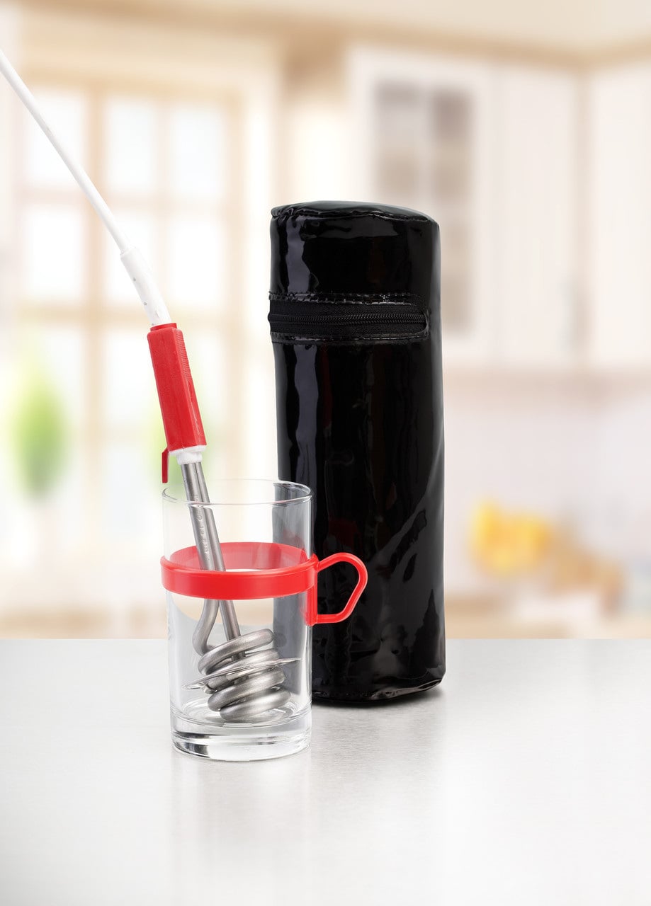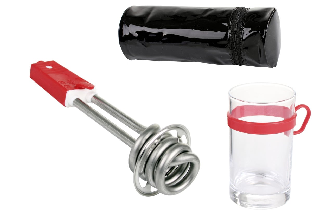 Кип'ятильник Rommelsbacher RTG 351 Матеріал корпусу нержавіюча сталь Вихідна потужність 350 Вт Вага: 0,42 кг Розміри 5,00 х 5,00 х 20,00 см Комплектація: Кип'ятильник, чохол (різні кольори), склянка 200 мл 3 - Виготовлений у Німеччині. Виробник: Rommelsbacher Країна: Німеччина Гарантія: 24 міс (офіційна в Україні) Високоякісний переносний нагрівач - кип'ятильник Rommelsbacher RTG 351 виготовлений у Німеччині з нержавіючої сталі. Він може нагрівати воду в невеликій кількості для приготування чаю, кави та інших потреб у дорозі, будинку або на роботі. У комплекті передбачена скляна склянка з тримачем. Кип'ятильник із термоізольованою ручкою та тримачем. Для забезпечення безпеки використовується вбудований захист від перегріву. Комплект продається разом з футляром, в якому зручно зберігати і переносити кип'ятильник.