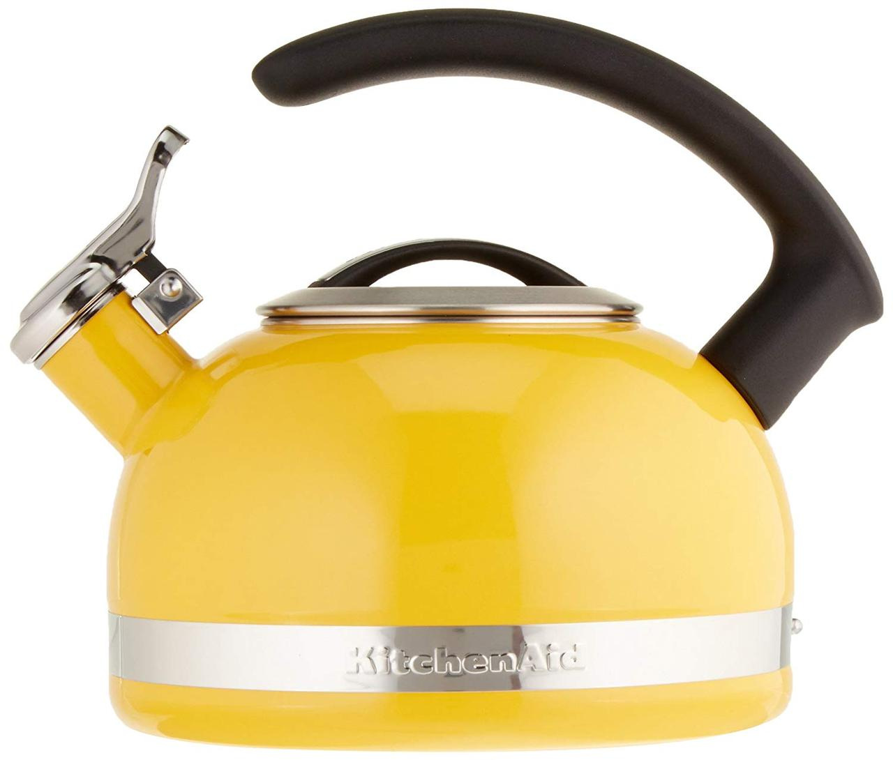 KitchenAid KTEN20CBIS 2.0-Quart Kettle with C Handle and Trim Band - Citrus Sunrise Компанія KitchenAid із задоволенням нагадати покупцям про чудову й улюблену багатьма традиції готувати чай за допомогою наплитного чайника. Стильний чайник kitchenaid — новинка на вашій кухні. Особливості моделі Чайник наплітний об'ємом 1,9 літра зі свистком виконаний у фірмовій гамі кольорів компанії KitchenAid. Його корпус — це комбінація неіржавкої сталі, прикрашеної пластинами благородного кольору. Чайник зі свистком підійде для кип'ятіння води на будь-яких варильних поверхнях, зокрема на конфорках індукційних плит. Переваги моделі Чайник має незаперечні переваги: • Покритий блискучою емаллю, яка стійка до подряпин і відколів. • Кришка чайника знімається — його зручно мити всередині та просто наповнювати. • Яскравий дизайн чайника прикрасить будь-яку кухню. • Смуга з логотипом компанії KitchenAid по колу чайника підкреслює статус власника. • Свисток чудово чути й не дасть забути про чайник на плиті. • Зручна ручка приладу виготовлена з неіржавкої сталі та покрита нековзними накладками, які до того ж не нагріваються. • Спеціальний важіль відкриває кришку носика — так воду наливати зручніше. Чайник KitchenAid 1,9 л підходить для всіх варильних поверхонь. Зроблений із неіржавкої сталі, з глянсовою емальованою зовнішньою поверхнею і зручною литою прогумованою ручкою, яка не нагрівається. Носик чайника легко відкривається одним натисканням. Чайник покритий блискучою кольоровою емаллю, стійкою до відколів і подряпин, і матиме чудовий вигляд на будь-якій кухні. З його допомогою ви зможете закип'ятити воду для звичайного або трав'яного чаю, каво-пуровіра, каш, які не потребують варіння тощо. Завдяки знімній кришці чайник легко наповнювати та зручно мити. Чайник яскравого забарвлення стане справжньою окрасою будь-якої кухні. Блискуча смуга по колу з логотипом KitchenAid оживляє дизайн чайника. Гучний свисток добре чути та завжди попередить вас про те, що чайник закипає. Ручка з полірованої неіржавкої сталі має зручну форму та покрита нековзними, ненагрівними накладками. Кришка носика зі свистком легко підіймається за допомогою невеликого важеля, щоб було зручніше наливати воду. Підходить для індукційних плит. Матеріал: нержавіюча сталь Матеріал ручки: нержавіюча сталь Об'єм: 1,9 л Внутрішнє покриття: емаль Підходить для індукційних плит Виробник: KitchenAid, США