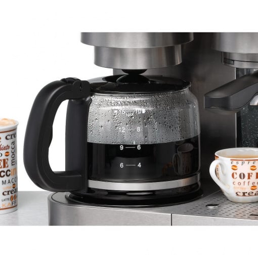 Кавомашина-кавоварка Rommelsbacher EKS 3010 Матеріал корпусу нержавіюча сталь Матеріал термоблока Литий під тиском алюміній Помпа ULKA (Італія) Вихідна потужність 2225 Вт Вага предмету 7,7 кг Габаритні розміри 37,5 х 27,5 х 2 літра Водяний фільтр замінний Сопло для гарячої води / пара нержавіюча сталь Кавовий фільтр Доповнення декоративний скляний глечик на 10 чашок кави, знімний фільтруючий елемент 1 x 4, протикраплинна система, Капучинатор Устаткування По 1 фільтруючому вкладишу 2 з штовхачем Виробник: Rommelsbacher Країна: Німеччина Гарантія: 24 міс (офіційна в Україні) Переваги: Корпус з нержавіючої сталі Термоблок - литий алюміній Тиск - 19 бар, помпа ULKA (Італія) Попереднє змочування кави Резервуар для води - 1,5 (з'єм) Електронний контроль рівня води Налаштування об'єму заповнення чашки (50-150 мл/100-250 мл) Металева насадка Panarello для приготування капучіно Знімний піддон для збору крапель Металеві грати краплізбірника Майданчик для зберігання чашок Режим енергозбереження (вимк. через 8 хвилин) Приготування 1 або 2 чашок Контрольна лампа режимів роботи Мережевий кабель: прибл. 1 метр Для ароматної краплинної кави, еспресо з ідеальною пінкою, капучино з ніжною молочною піною та багато іншого… Кавоварка: декоративний скляний глечик на 10 чашок кави резервуар для води з індикатором рівня води знімна фільтруюча вставка 1 x 4, протикапельна система аромату піднос для підігріву з автоматичним відключенням автоматичне відключення Еспресо: обладнання таке ж, як EKS 2010 Будь то ароматна кава з ароматним ароматом, ароматний еспресо з пінкою, капучино або чай - цей центр кави / еспресо найкраще виконує всі побажання та ідеально підходить для тих хто хоче насолодитися різноманітністю кавових напоїв вдома або в офісі. Чудові матеріали та першокласні характеристики забезпечують ароматне кавове частування. За допомогою кавоварки у скляному глечику можна приготувати до 10 чашок краплинної кави. Фільтруючий вкладиш 1 x 4 із системою захисту від крапель та нагрівальна пластина з антипригарним покриттям та автоматичним відключенням забезпечують зручність використання. Еспресо з пінкою можна зробити за 1 хвилину. Завдяки потужному насосу та чудовому термоблоку мелені зерна, а також капсули для еспресо/кави будуть перетворені на ароматні напої. За допомогою насадки з нержавіючої сталі можна легко приготувати гарячу молочну піну і отримати гарячу воду для чаю. Місткість чашки програмується індивідуально. З твердим портафільтром можна приготувати 1 або 2 чашки залежно від елемента, що фільтрує. Змінний фільтр для води забезпечує високу якість води. Резервуар для води та піддон для збору крапель знімаються, тому їх легко чистити. Піднос для чашок, що регулюється по висоті, і зручна панель управління зі світлодіодними контрольними лампами забезпечують зручність використання. Чудовий, елегантний та універсальний – для професіоналів серед любителів кави!