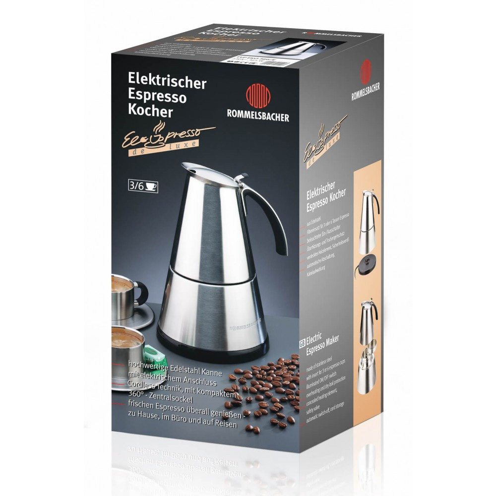 Кавоварка еспресо Rommelsbacher EKO 364/E ESPRESSO MAKER EKO 364/E Колір нержавіюча сталь Матеріал корпусу нержавіюча сталь Потужність 365 Вт Вага предмета 0,78 кг Розміри (Ш / Д / В) 16,00 х 12,00 х 19,00 см Місткість з фільтруючим вкладишем з нержавіючої сталі на вибір 2 або 4 чашки (місткість 250 мл) Особливі можливості Захист від включення без води Виробник: Rommelsbacher Країна: Німеччина Гарантія: 24 міс Смак для всіх органів почуттів - просто насолоджуйтеся ідеальним еспрессо в будь-якому місці і з легкістю приваблива кавоварка еспресо з високоякісної нержавіючої сталі прихований нагрівальний елемент з електричним підігрівом Електричне з'єднання бездротової технології компактне центральне підставу на 360 °, глечик можна розмістити всюди, ідеально підходить як для правшів, так і шульг Вимикач з підсвіткою, автоматичне вимикання ергономічна, теплоізольована ручка Захист від перегріву і википання, запобіжний клапан вбудований намотувальник кабелю з фільтруючим елементом з нержавіючої сталі для 2 або 4 чашок еспресо Подобається всім - оригінальний італійський еспресо. ROMMELSBACHER Espresso Maker ElPresso mini пропонує кращі умови для трохи меншою спраги кави. Візуально привертає увагу: досконалий дизайн з високоякісної нержавіючої сталі і ергономічно вигнута ручка з нержавіючої сталі з теплоізоляційним пластиком всередині. Незалежно від того, 4 чашки або - завдяки входить в комплект фільтруючому елементу - всього 2 чашки еспрессо, робота проста і зручна. Налийте воду і порошок еспресо, поставте бездротовий глечик на центральне підстава, включите і вимкнете. Як тільки еспресо буде готовий, пристрій автоматично вимкнеться. Просто відмінно! Купити Кавоварку еспресо Rommelsbacher , інші моделі кавоварок можна в інтернет магазині !