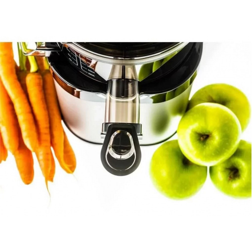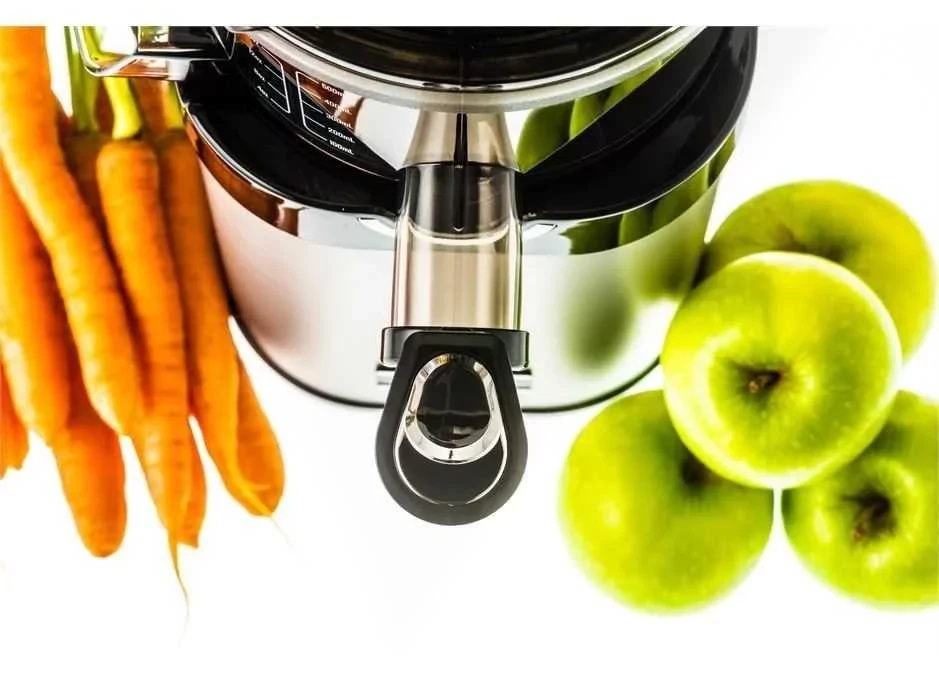 ✔ Оновлена конструкція шнека для найкращої переробки волокнистих фруктів і овочів: білої і червоної капусти, шпинату, селери, порею і т. п. Навантаження на шнек зменшена, а м'якоть залишається під ним, що полегшує приготування фрешу.
