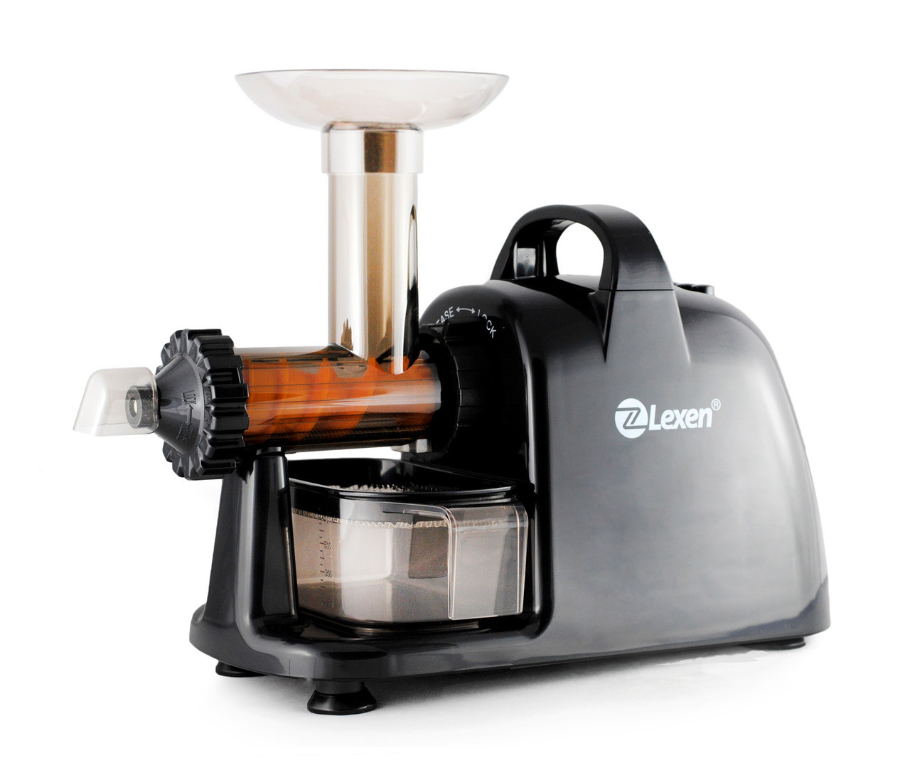 Lexen Healthy Juicer Electric спроєктована спеціально для вичавлювання соку з зелені та паростків пшениці. Вичавлювання соку відбувається за допомогою шнека та внутрішньої частини корпусу, який має спеціально розроблену ребристу поверхню.