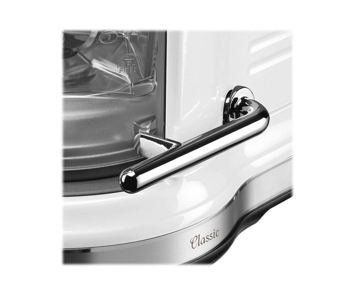 Глечик об'ємом 1,75 л, що не містить БФА, легко вставляється в основу, придатний для миття в посудомийній машині, зі зручною м'якою ручкою, що щільно прилягає кришкою і завантажувальною лійкою з вбудованим мірним стаканчиком для додавання інгредієнтів під час змішування. Для безперервного змішування різних обсягів інгредієнтів без використання рук. Можна мити в посудомийній машині