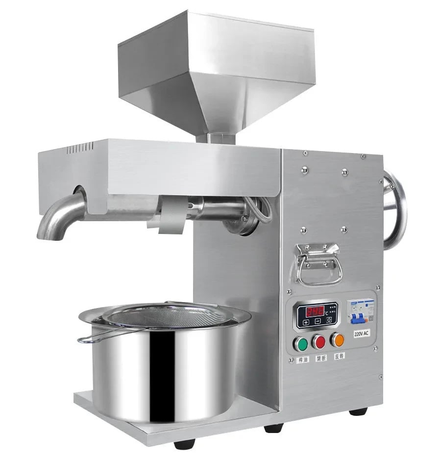 Маслопресс коммерческий Tekhniko OP-3000 Мощность: 3000 Вт Производительность: 15-20 кг/ч Термостат Тип: маслопресс холодного и горячего отжима Напряжение: 220В Вес: 52 кг Вес в упаковке: 61 кг Размер: 55*28*50 см Размер в упаковке: 60*31*55 см Місткість бункера: 5,0 л Материал: нержавеющая сталь 304 Метод управления: интеллектуальное управление + кнопки Применимые отрасли: гостиницы, фабрика продуктов питания и напитков, рестораны, домашнее использование, розничная торговля, продуктовые магазины, магазины продуктов питания и напитков Тип прозводимого масла: Масло семян льна, соевое масло, масло семян рапса, масло семян чая, масло базилика, кунжутное, кедровое масло, подсолнечное масло, миндальное масло, масло грецкого ореха, арахисовое масло Особенности: 1. 20 видов сырья. 2. Интеллектуальный контроль процесса работы, контроль температуры, постоянная температура нагрева. 3. Для холодного и горячего отжима. 4. Мощное воздушное охлаждение для продолжительной работы. 5. Экономия энергии. Преимущество: 1. машина для отжима масла изготовлена из нержавеющей стали, прочная, чрезвычайно качественная, легко чистится. 2. Мощный промышленный медный двигатель, непрерывное прессование. 3. Специальная бесшумная шестерня и подшипник, изготовленные из нержавеющей стали 4. С помощью регулятора температуры он может устанавливать температуру в соответствии с различными материалами. 5. вращающийся маховик, вращающийся на 360 градусов, разные семена регулируют разную плотность, благодаря чему машина имеет более высокую скорость экстракции. 6. Высокая скорость отжима масла 7. Высокая производительность 15-20 кг, может использоваться как для дома, так и для коммерции. Применение: подходит для семян подсолнечника, рапса, олеандра, сои, семян чая, семян перца, кунжута, арахиса и т. д. Семена которые может переработать с помощью Маслопресса Tekhniko: белый и черный кунжут, подсолнечник, арахис, лен, семечка тыквы, горчица, расторопша, миндаль, ядро семян арганы, семена камелии, семена канолы (рапс), семена клещевины, семена чиа, кокосовая стружка или кокосовая мякоть,семена хлопчатника, зародыши кукурузы, семена травы, семена конопли, семена жожоба, семена киви, семена моринги, ядро семени нима, перец (сухой), сосна ядро ореха, семя шиповника, семя сафлора, лимонник китайский и другие масличные семена. Эффективность отжима зависит от качества, сорта, влажности,температурного режима отжима, способа хранения и места выращивания используемых семян. Эффективность отжима масла c 1 кг. (средняя): Арахис 45% Кунжут белый 50% Кунжут чёрный 50% Подсолнечник очищенный 54% Орех грецкий 40% Лён “Кудряш” 45% Конопля неочищенная 30% Горчица черная, белая, желтая 30% Рыжей 20% Расторопша 25% Сафлор 25% Тыква очищенная 40% Редька масляничная 45% Кориандр 20%