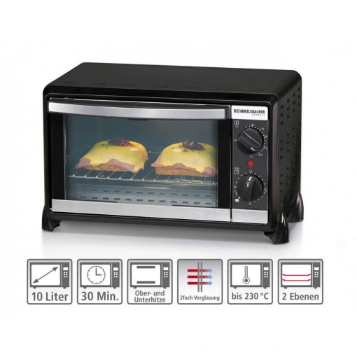 Міні-піч Rommelsbacher BG 950 Колір чорний Потужність 230 В 950 Вт. Вага 3,64 кг Розміри (Ш/Д/В) 39,00 х 27,50 х 23,00 см Об'єм 10 літрів Види нагріву Двостороннє тепло Безступінчастий контроль температури Спеціальні можливості Склопакет дверцята духовки з ущільненням Виробник: Rommelsbacher, Німеччина Країна виробник: Китай Гарантія: 24 міс Маленький, але потужний - ідеально підходить для невеликого домашнього господарства та для швидких перекусів Об'єм: 10 літрів, для форм діаметром до 20 см. 2 захищених кварцових нагрівальних елементів для швидкого нагріву C Тип нагріву: верхній / нижній нагрівання 30-хвилинний таймер з постійним налаштуванням і звуковим сигналом Пекарна камера з простим у догляді антипригарним покриттям : деко для смаження / запікання, хромовані грати для гриля, складне деко для крихт Ефективне енергозбереження завдяки невеликій духовці, подвійному склінню та ущільненню духовки. Маленький, але потужний – легкий із нашої серії духовок! Ідеально підходять для невеликого будинку, але також практичні як доповнення до будь-якої кухні. Багети, тости, булочки чи кекси... що б ви не приготували, ви заощадите енергію, розігріючи невелику духовку. Крім того, подвійне скління дверцят духовки та ущільнення духовки позитивно впливають на енергетичний баланс. Температуру можна плавно регулювати від 80 до 230°C, а 30-хвилинний таймер із постійним налаштуванням та звуковим сигналом робить простоту використання ідеальною. Завдяки антипригарному покриттю пекарної камери стильний пристрій легко чистити.