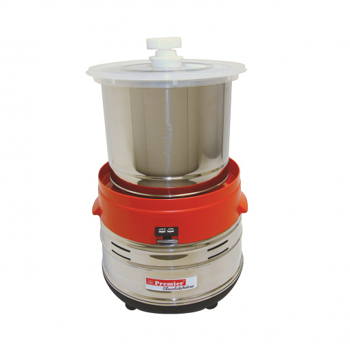 Мінічаша для меланжера Premier Micro-Batch Set Accessory Професійний Меланжер Premier Tilting Chocolate Refiner — поліпшений млин із гранітними жорнами для приготування шоколаду, горіхової пасти, урбеча та інших суперфудів, спеціально розроблений для американського та європейського ринку. Потужний 200 W мотор. Велика місткість 2 літри (від 0,5 кг до 4,5 кг шоколаду). Шоколад, що добре зарекомендує себе для домашнього та малосерійного виробництва крафтового (ремеленого) шоколаду. Модель Tilting дає змогу легше заливати, коли ваш продукт закінчив рафінування. Просте натискання кнопки, і ви можете просто нахилити та налити своє творіння у форму, чашу, аркуш або інші засоби зберігання без потреби видаляти барабан з основи. Зробіть шоколад, використовуючи найсучаснішу настільну шоколадну рафінувальну машину. Побудований із якісних матеріалів для безперебійної та довговічної роботи. Міцні та надійні механізми для задоволення потреб у виробництві шоколаду Повністю герметичні та міцні підшипники — без прилипання або заїдання Кевларові ремені — немає гумового пилу та прослизання Запобіжний вимикач для запобігання перегріванню у разі тривалої роботи Швидка, тиха й енергоефективна робота Меланжер для шоколаду та урбач мейкер Premier Tilting Chocolate Refiner — це універсальний кухонний прилад, створений для прихильників смачного та здорового харчування. З його допомогою ви зможете готувати ніжний шоколад, що тане в роті горіхову пасту, урбач з ідеально однорідною консистенцією й багато інших смачних поживних продуктів. Гранітні циліндричні жорна урбач мейкера перетирають сировину до найдрібніших гранул розміром 15-20 мікронів. П'ятилітрова чаша пристрою виготовлена з харчової неіржавкої сталі AISI304, а отже, продукти не окиснюватимуться під час контакту з нею. Завдяки захисту від корозії, сталеву чашу можна легко мити під проточною водою й вона не заіржавіє. Днище чаші повністю герметизоване та виготовлене з суцільного шматка граніту.
