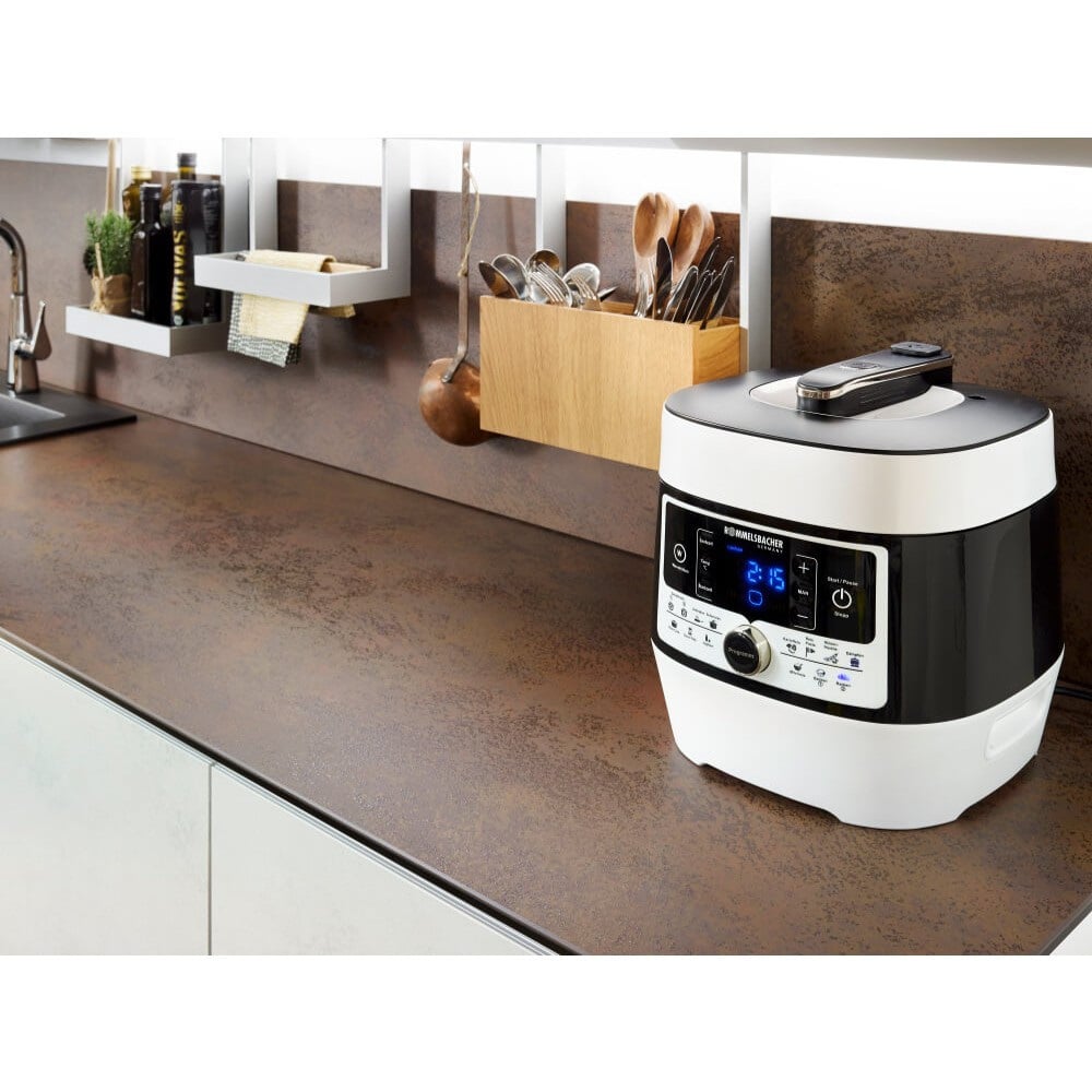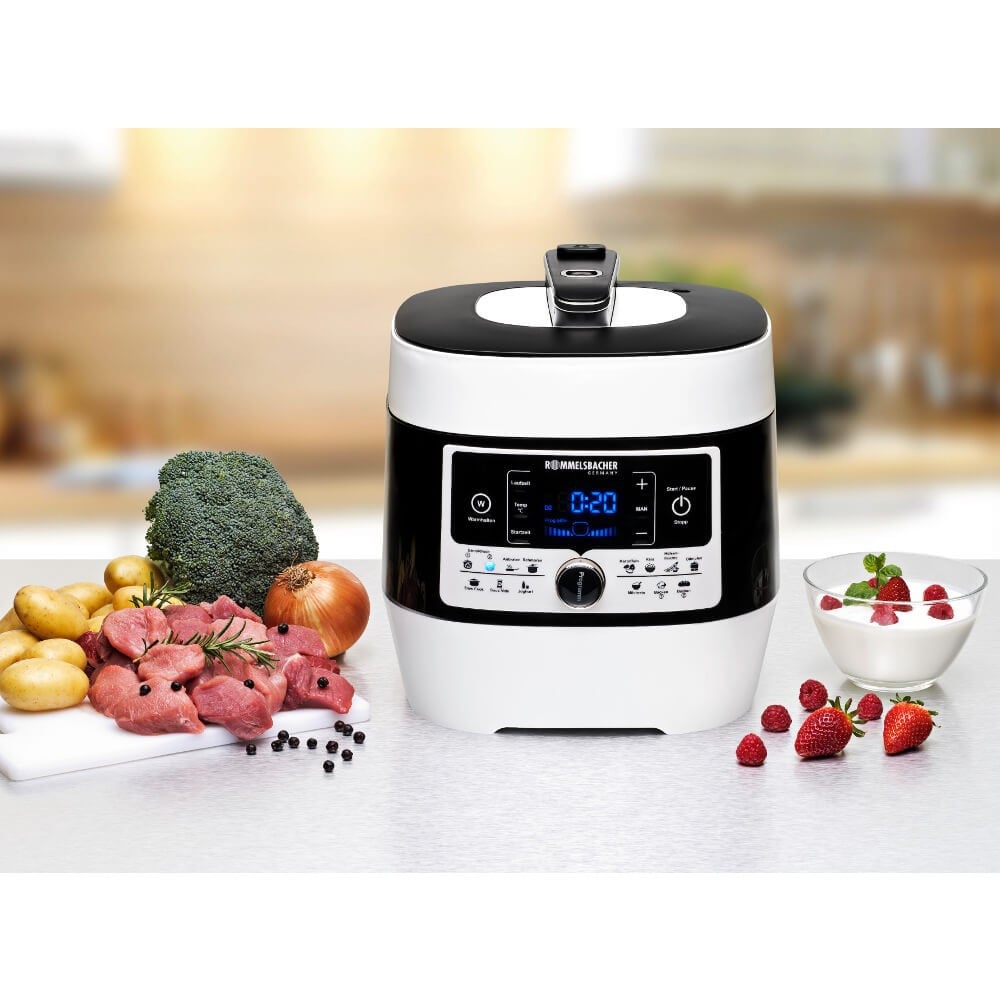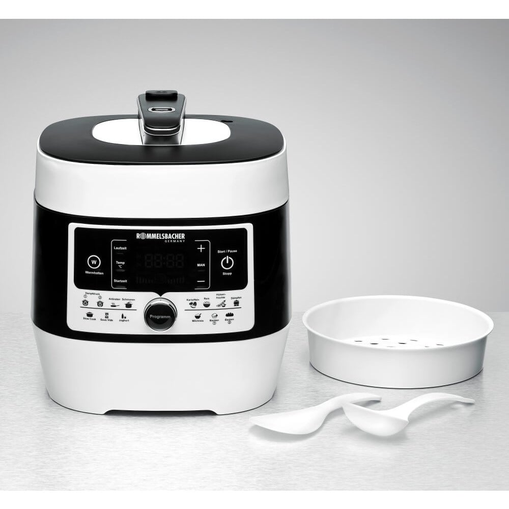 Мультиварка Rommelsbacher MD 1000 MULTI PRESSURE COOKER MD 1000 MeinHans Колір білий/чорний Потужність 230 В 1000 Вт Вага 6,53 кг Розміри 29,50 х 32,00 х 31,50 см Корпус 1 Функція збереження тепла Функція приготування під тиском Кількість рівнів тиску 2 РК дисплей Антипригарне покриття Система безпеки Особливості Кухня з рецептами Комплектація Чаша, мірна склянка, 2 порційні ложки, інструкція рус. + рецепти EAN 4001797803009 Виробник: Rommelsbacher Країна: Німеччина Гарантія: 24 міс (офіційна в Україні) інструкція + рецепти Легке та дбайливе приготування овочів, м'яса, каструль, супів, йогурту та інших улюблених страв. високоякісний пластиковий корпус Cool Touch 14 програм автоматичного приготування, приготування вручну (2 рівні тиску пари, обсмажування, гасіння, кип'ятіння, приготування на пару, картопля, рис, рисовий пудинг, йогурт, бобові, випічка хліба, су-вид, повільне приготування) діапазон температур від 40 °C до 170 °C функція приготування під тиском з 2 рівнями тиску дуже зручний РК-дисплей окрема функція приготування з ручним управлінням попередній вибір часу початку до 24 годин (таймер), функція збереження тепла велика знімна чаша (6 літрів) з чудовим антипригарним покриттям і корисний об'єм 4 літри окрема кнопка для безпечного скидання тиску пари 12-кратна система безпеки для максимального захисту знімний шнур живлення У комплекті: додаткове кільце ущільнювача, парова вставка, підставка, 2 серверні ложки Приготування на пару - невід'ємна частина традицій. Цифрова мультиварка Mein Hans робить цей вид приготування придатним для нового тисячоліття. Заощаджуйте час, енергію та місце: цей універсальний прилад може замінити до 9 кухонних приладів. З MD 1000 ви можете чудово готувати, готувати на пару, смажити і гасити, готувати рисовий пудинг або йогурт і навіть пекти хліб. Він також швидко готовий до використання для всіх сучасних методів приготування, таких як Sous Vide і Slow Cooking. Вам доступно 14 програм приготування, з тиском пари або без неї. Незалежно від того, без пари, з нормальним чи м'яким тиском пари - електронна система повністю автоматично та безпечно контролює процес приготування. Усі програми можна настроювати індивідуально, також можливі ручні налаштування. «Mein Hans» переконує в усіх сферах завдяки своїм захисним властивостям. Такий спосіб приготування заощаджує до 70% часу та 50% енергії порівняно з традиційними процесами приготування. Вимкнення відбувається автоматично, наступний режим підігріву підтримує температуру посуду до однієї години. Високоякісні матеріали та продумана конструкція забезпечують зручність використання. Знімна чаша має антипригарне покриття і її легко чистити. Завдяки компактній конструкції прилад можна зберігати після використання, заощаджуючи місце. Універсальний кухонний прилад, який ви незабаром більше не захочете змінити. Високоякісні матеріали та продумана конструкція забезпечують зручність використання. Знімна чаша має антипригарне покриття і її легко чистити. Завдяки компактній конструкції прилад можна зберігати після використання, заощаджуючи місце. Високоякісні матеріали та продумана конструкція забезпечують зручність використання. Знімна каструля має антипригарне покриття, її легко чистити. Завдяки компактній конструкції прилад можна зберігати після використання, заощаджуючи місце. Універсальний кухонний прилад, який ви незабаром більше не