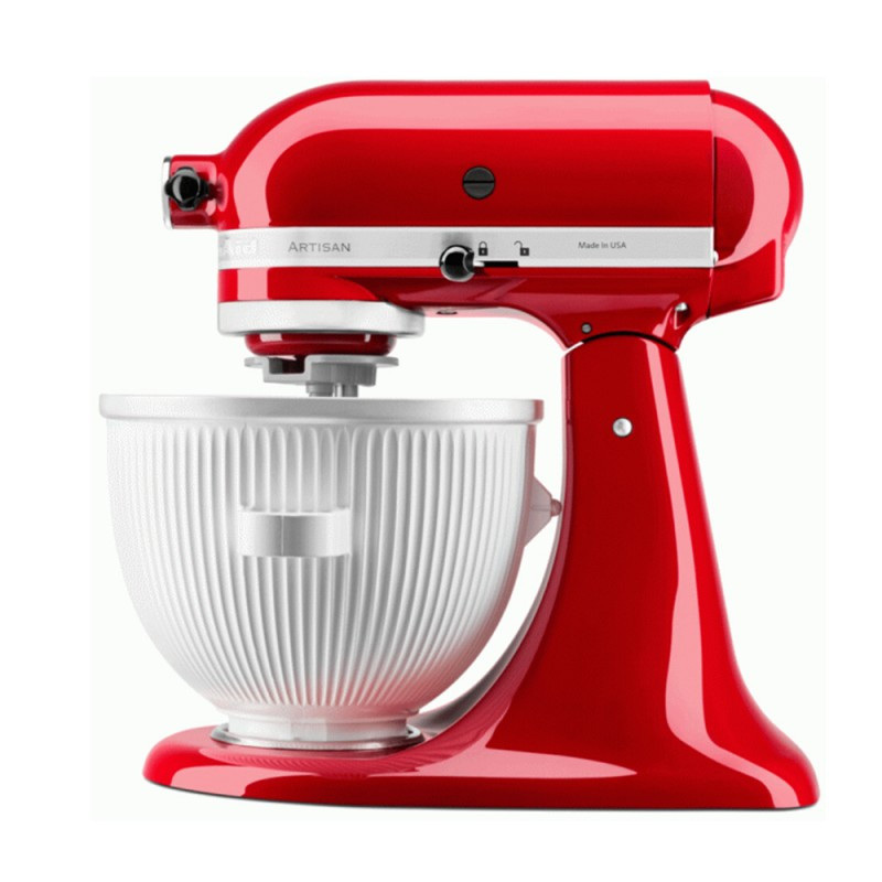 Насадка для приготування морозива KitchenAid 5KSMICM Чаша Морожениця KitchenAid для міксерів із чашею 4,8-6,9 л 5KSMICM Ця насадка дає змогу легко приготувати різноманітні види домашніх морожених десертів, включно з кремовим морозивом, сорбетами та замороженим йогуртом, застосовуючи ваш міксер KitchenAid. Ось деякі ключові точки, які явно видно з вашого опису: Відповідні моделі міксерів: Насадка сумісна з міксерами KitchenAid з поворотною голівкою, окрім моделей 5KSM3, і з усіма міксерами з підйомом чаші, окрім моделей 5KPM5, 5KPM50 і 5K5. Можливості приготування: Ви можете експериментувати з різними рецептами морозива, створюючи власні смаки та консистенцію. Це підходить для невеликих партій десертів. Підготовка морозильної чаші: Для використання насадки необхідно заздалегідь заморозити миску в морозильній камері. Оптимальний час заморожування - не менше 16 годин. Процес приготування: Після заморожування чаші, ви встановлюєте її на міксер і використовуєте приводну пластину, щоб змішувати і збивати інгредієнти для приготування морозива. Ємність: Чаша може вмістити до 1,9 літра морозива. Це робить насадку чудовим вибором для вечірок і спонтанних частувань. Догляд: Чашу не можна мити в посудомийній машині. Для чищення рекомендується використовувати теплу воду з милом і чистити її вручну. Чаша для морозива сумісна з усіма міксерами KitchenAid з поворотною головкою, крім моделей 5KSM3. Також сумісний з усіма міксерами з підйомом чаші, крім моделей 5KPM5, 5KPM50 і 5K5.