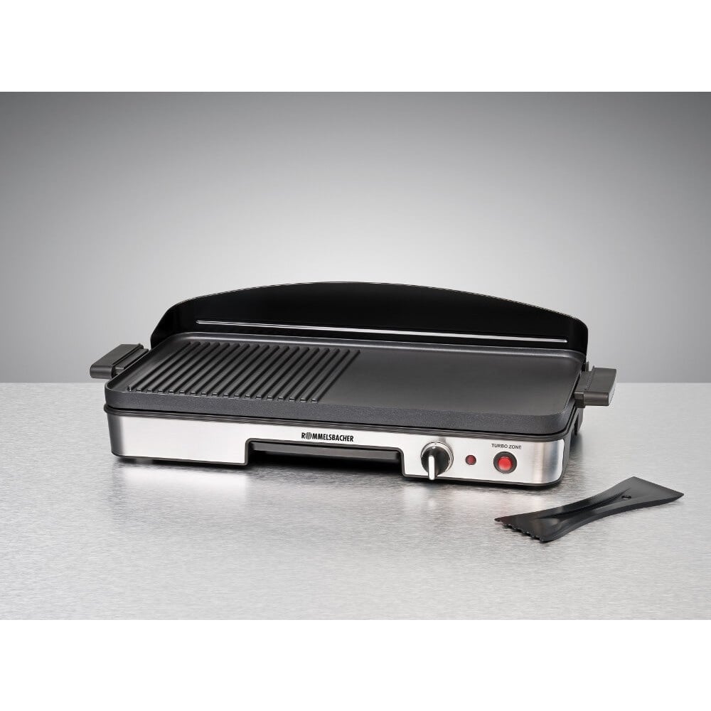 Настільний гриль Rommelsbacher BBQ 2003 Колір продукту чорний/нержавіюча сталь Матеріал корпусу нержавіюча сталь/пластик Потужність 230 В 1900 Вт Вага 4,52 кг Розміри (Ш/Д/В) 59,00 х 29,00 х 15,50 х 25 см Антипригарне покриття 3-шарове антипригарне покриття QuanTanium® Матеріал грилю Литий під тиском алюміній Особливості Зона турбо гриля Виробник: Rommelsbacher Країна: Німеччина Гарантія: 24 міс (офіційна в Україні) Приготування на грилі з повним смаком - з перемиканням гриля масивна знімна решітка з литого алюмінію з вбудованими нагрівальними елементами Зона турбо-грилю, що перемикається, для швидкого і гострого обсмажування безступінчастий, точний контроль температури ідеальний поділ зони гриля: - рифлена зона для типового гриля - гладка зона теппаньяки для м'яса, риби, риби. д. високоякісне тришарове антипригарне покриття QuanTanium® для найкращих результатів приготування на грилі та надлегкого очищення Вбудований злив жиру для здорового приготування на грилі з низьким вмістом жиру знімний піддон для збирання жиру Контрольна лампа 2 теплоізольовані ручки для безпечної роботи 0 Площа0. У комплекті: знімний захист від бризок / вітру, скребок для очищення. Приготування на грилі за допомогою електрики - безпечне, чисте та швидко. Цей настільний гриль з передньою панеллю з високоякісної нержавіючої сталі – зірка будь-якого барбекю. Будь то на відкритому повітрі на балконі та терасі або в приміщенні за столом та на кухні – цей електричний настільний гриль забезпечує безпечне та зручне приготування барбекю без диму та вогню. Приготування на грилі за допомогою електрики означає швидке нагрівання з точним контролем температури та найкращі результати приготування на грилі. Стомлююча утилізація золи або залишків вугілля більше не потрібна. Решітка з цільного литого алюмінію під тиском з дуже міцним антипригарним покриттям QuanTanium® розділена на дві зони. На ребристій поверхні м'ясо і овочі отримують типовий малюнок гриля, а на гладкій поверхні теппаньякі можна приготувати рибу, овочі, млинці та інші десерти. Нагрівальні елементи вбудовані безпосередньо в пластини гриля, таким чином досягається оптимальне розподілення температури; температура регулюється безперервно. Як додатковий плюс цей гриль має зону турбо-грилю, що переключається, для швидкого гарячого обсмажування. Вбудований злив жиру зі знімним піддоном для збору крапель, теплоізолюючі ручки, а також знімний захист від бризок/вітру та надлегке очищення доповнюють простоту використання цього незвичайного настільного гриля.
