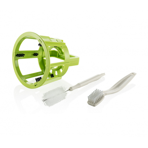 Соковичавниця легко очищається у процесі роботи. Інтегрований набір ножів постійно очищає віджимальний пристрій від залишків макухи, не даючи йому забиватися. Спеціальний клапан на передній частині соковичавниці захищає стільницю від крапель соку.