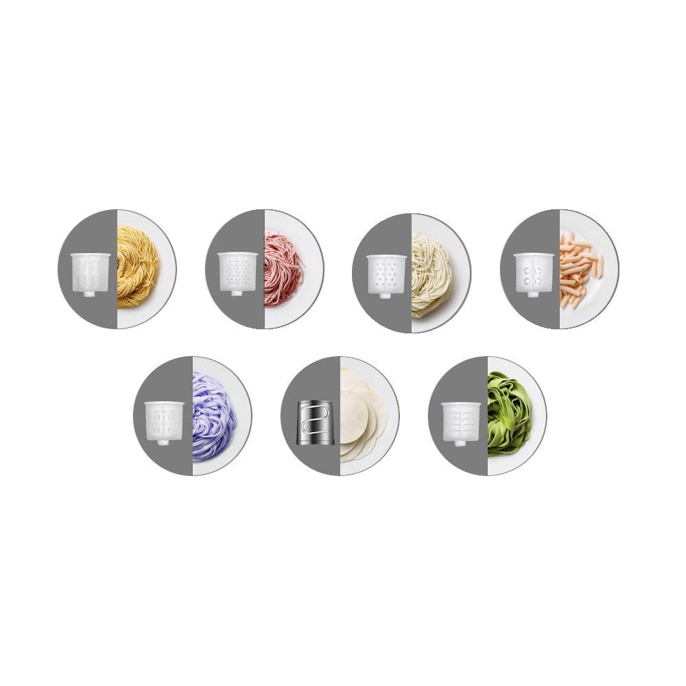 7 сменных форм для макарон (матриц), хранящихся во встроенной коробке для принадлежностей