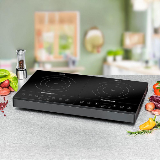 Плита індукційна Rommelsbacher CT 3402/IN Колір: чорний / сріблястий Потужність: 3400 Вт Живлення: 230 В Кількість конфорок: 2 Розміри (Ш/Г/В): 58,50 × 34,50 × 7,00 см Вага: 3,80 кг Тип нагріву: індукція Тип керування: сенсорне Кількість рівнів потужності: 10 Кількість рівнів температури: 10 (від 60 до 240 °C) Матеріал корпусу: пластик Склокерамічна поверхня: так, легка у догляді Таймер: до 180 хвилин Особливості: 2-швидкісний вентилятор, розпізнавання посуду, захист від перегріву, індикатор залишкового тепла, нековзні ніжки Споживання в режимі очікування: ≤ 0,8 Вт Час до переходу в режим очікування: 60 секунд Гарантія: 24 місяці Виробник: Країна виробник: Китай Гарантія: 24 міс Основні переваги Rommelsbacher CT 3402/IN: 2 зони нагріву з незалежним управлінням Потужність 3400 Вт – ефективне приготування з мінімальними витратами часу 10 рівнів потужності і 10 температурних режимів (від 60 до 240 °C) Сенсорне управління і LED-дисплей Таймер на 180 хвилин з авто-вимкненням Дуже тиха робота завдяки оптимізованому 2-швидкісному вентилятору Склокерамічна поверхня, легка у догляді Функції безпеки: виявлення посуду, захист від перегріву, індикатор залишкового тепла, нековзні ніжки Індукційна плита Rommelsbacher CT 3402/IN – потужність та зручність у подвійному форматі Ефективно, сучасно, мобільно – подвійна індукція для щоденного використання Індукційна плита Rommelsbacher CT 3402/IN стане незамінним помічником для кухні, офісу, дачі або мобільного приготування. Завдяки двом конфоркам, потужності 3400 Вт і точному електронному управлінню вона забезпечує швидкий нагрів, високу енергоефективність і комфортну експлуатацію. Склокерамічна варильна поверхня легко миється та виглядає сучасно. Сенсорна панель керування дозволяє обирати один із 10 рівнів потужності або регулювати температуру в діапазоні від 60 до 240 °C для кожної з двох зон. Завдяки LED-дисплею, таймеру на 180 хвилин і 2-швидкісному вентилятору користувач отримує повний контроль над процесом приготування. CT 3402/IN має функцію розпізнавання посуду, індикатор залишкового тепла, захист від перегріву та автоматичне вимкнення при простої. Все для вашої безпеки та зручності. Вага плити – всього 3,8 кг, що дозволяє легко переміщати її за потреби.