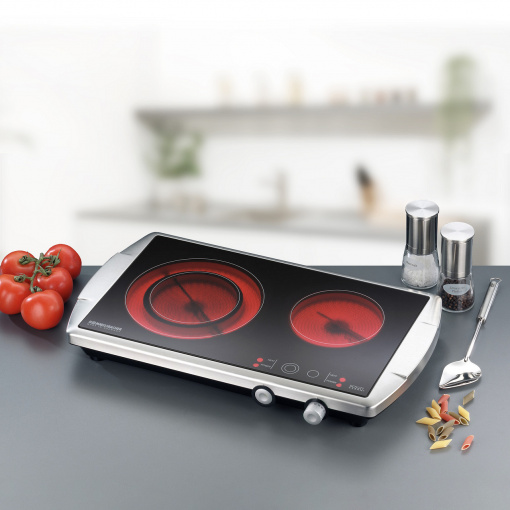 Плита подвійна HiLight Rommelsbacher CT 3400/E CERAN® виготовлена в Німеччині. Ця модель відповідає вимогам високої якості, відповідає дуже високим стандартам якості та безпеки. Плиту Rommelsbacher CT 3400/E ви можете використовувати у себе на кухні в будинку, можете встановити в зручному місці на дачі, а також її зручно використовувати в офісах і на кухні громадського харчування.