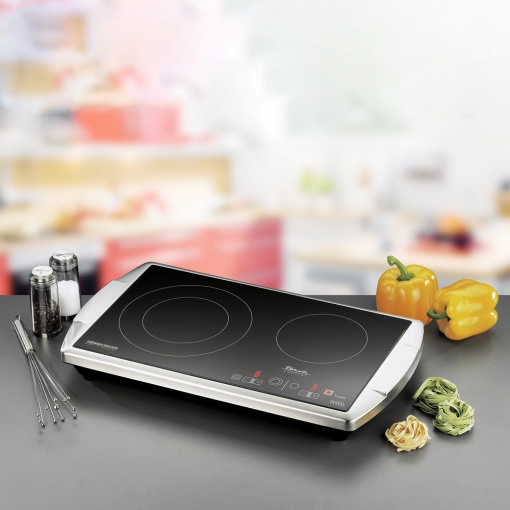 Зони нагріву HiLight® регулюються в 9 ступенів з допомогою Touch Control, що забезпечує економію енергії. Двоконтурне рішення дозволяє використовувати дуже велику зону діаметром 210 мм, що ідеально підходить для великих варильних ємностей. Дві контрольні лампочки та індикація залишкового тепла забезпечують високий рівень безпеки при використанні плити.