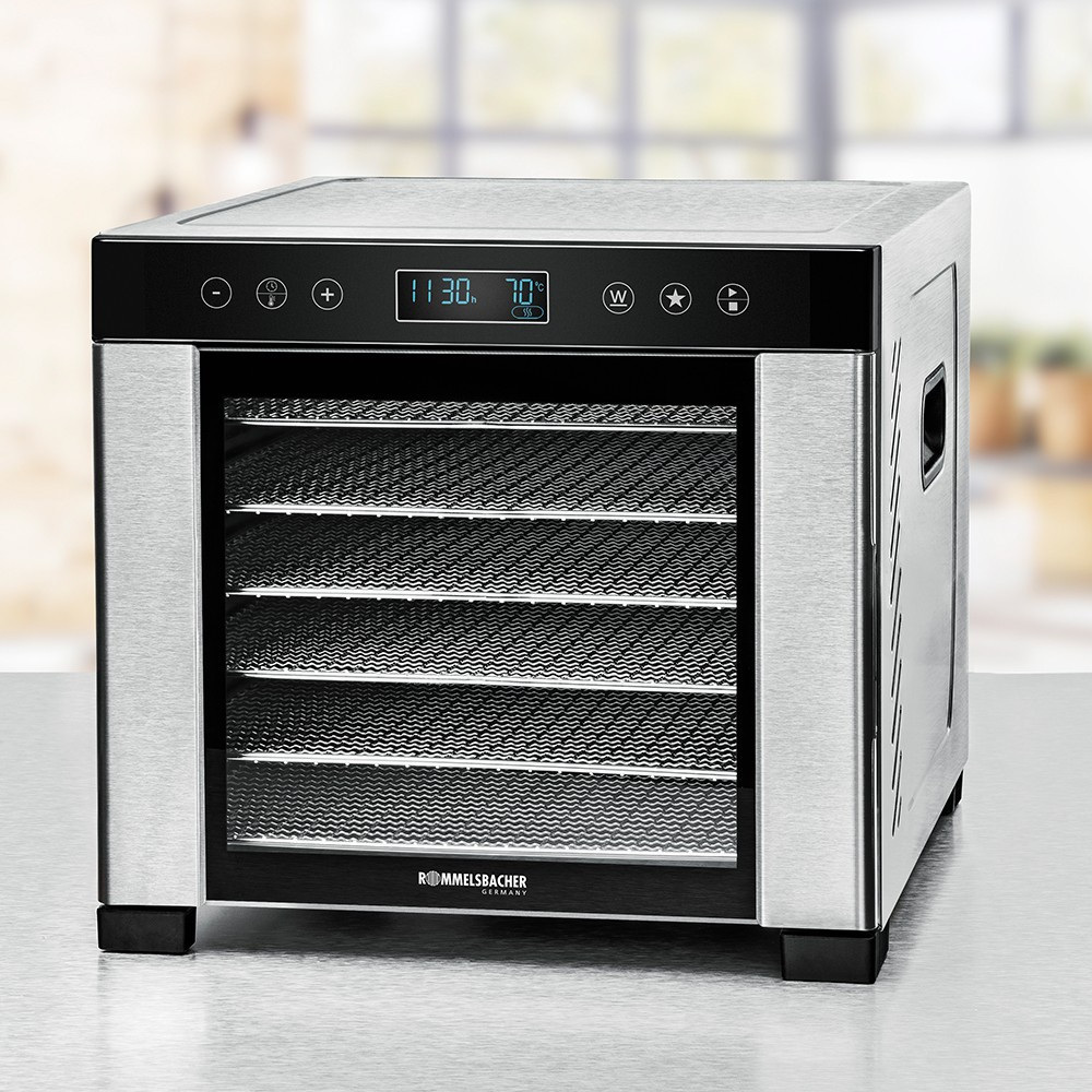 Дегідратор Rommelsbacher – це ефективний і безпечний спосіб сушіння продуктів без втрати смаку та корисних властивостей. Він чудово підходить для тих, хто дотримується здорового харчування та хоче готувати натуральні продукти без консервантів і штучних добавок.