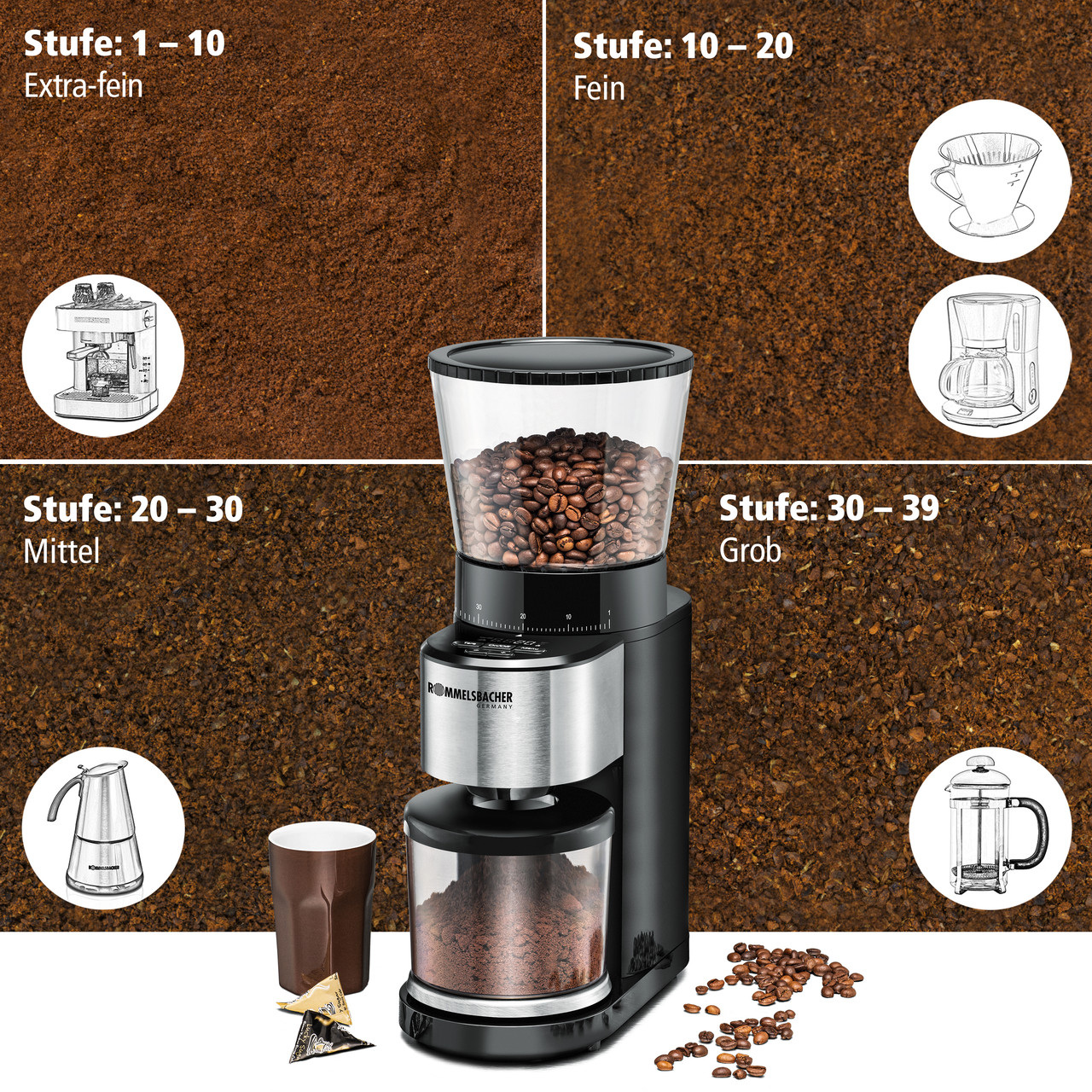 Детальні характеристики Професійна кавомолка Rommelsbacher EKM 500.