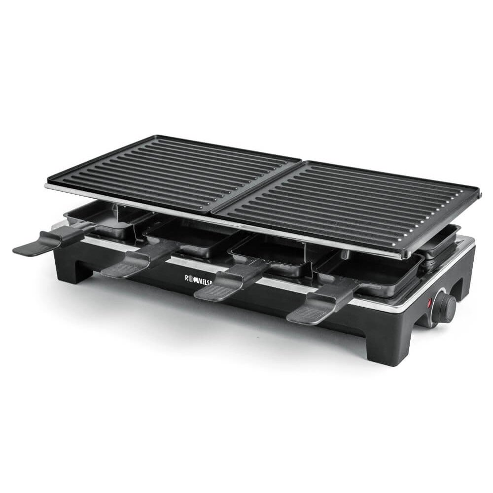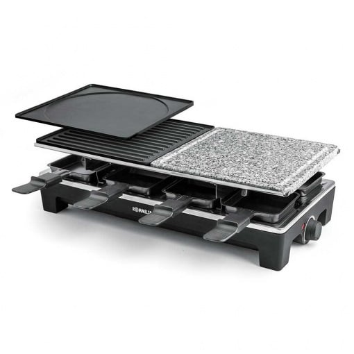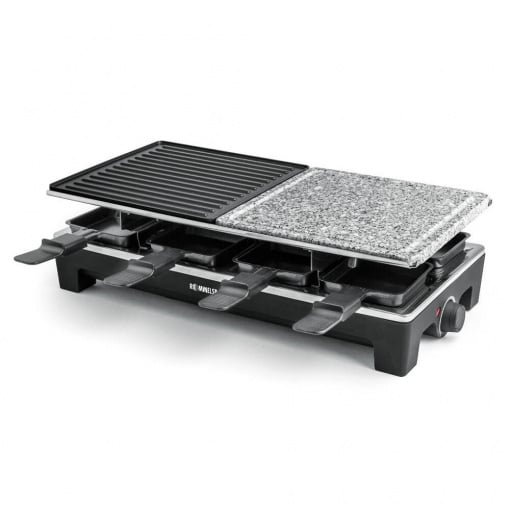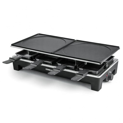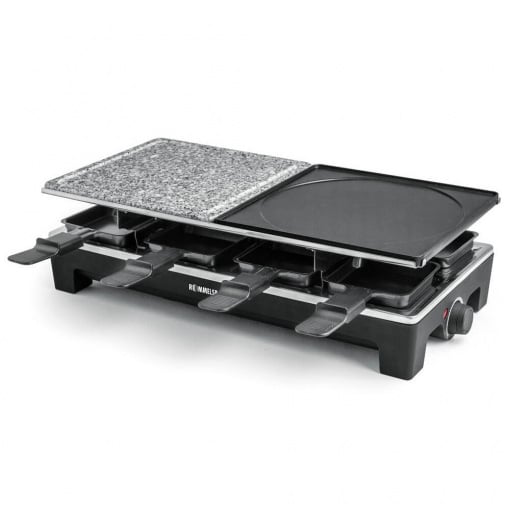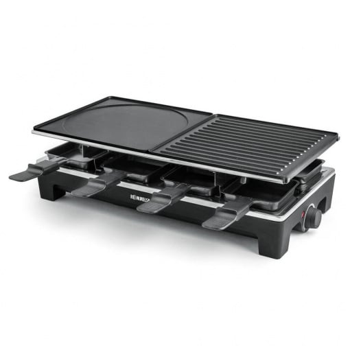 Раклітниця-гриль Rommelsbacher RCS 1350 Колір продукту чорний/нержавіюча сталь Вихідна потужність 230 В 1350 Вт Вага предмета 5,66 кг Габаритні розміри 48,00 х 23,50 х 13,50 см Матеріал грилю Натуральний камінь Антипригарне покриття 2-Lagen Xylan® Plus Кількість сковорідок 8 Виробник: Rommelsbacher Країна: Німеччина Гарантія: 24 міс Багатоцільові комбінації для відмінної веселощів на вечірці корпус з термостійкого синтетичного матеріалу 2 тверді знімні поворотні решітки з литого під тиском алюмінію3, 2 - ребриста сторона для типових слідів гриля - гладка сторона з тисненою формою для приготування млинців пластина для гриля з чудовим двошаровим антипригарним покриттям Xylan® Plus для досягнення найкращих результатів і легкого очищення , з круговою канавкою для соку, ідеально підходить для смаження з низьким вмістом жиру плавне регулювання температури за допомогою термостата, захист від перегріву сигнальна лампа наддовгий шнур живлення (1,9 м) вбудований натягувач шнура термоізольовані ручки, 8 лопаток. Цей високоякісний раклет від ROMMELSBACHER гарантує ще більше кулінарної різноманітності при приготуванні раклетів на грилі. Ви можете вільно комбінувати різні поворотні пластини для гриля, що дозволяє гнучко вибирати та комбінувати поверхні для гриля. Чи то на обох пластинах поворотного гриля з високоякісним покриттям (одна сторона рифлена, інша гладка) або на натуральному камені – є чудовий вибір на будь-який смак. На гранітній плиті можна смажити гриль прямо на камені. Цей матеріал стійкий до подряпин та порізів і забезпечує чудовий результат приготування на грилі, незалежно від того, чи йдеться про м'ясо, рибу чи овочі. Кругова канавка для соку збирає жир або рідину, що дозволяє готувати на грилі з низьким вмістом жиру. Обидві грати з литого алюмінію під тиском можна використовувати з обох сторін. Чи це приготування на грилі з типовими мітками для гриля або, швидше, в стилі теппаньякі на гладкій тарілці - можливо все. 8 листів з антипригарним покриттям можна використовувати як листи для раклетів для сиру або для запікання смачних закусок і гарнірів на ваш смак. Популярна та універсальна версія раклетів для цілорічного грилю за столом.