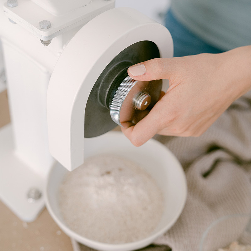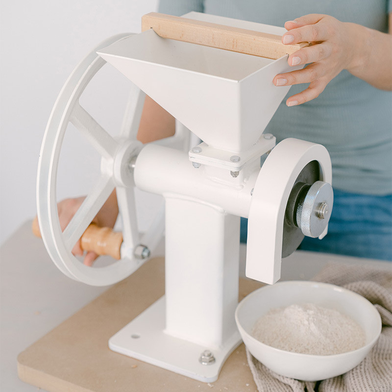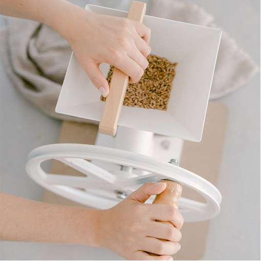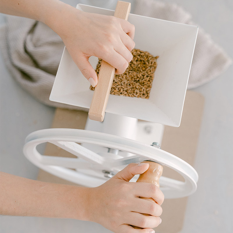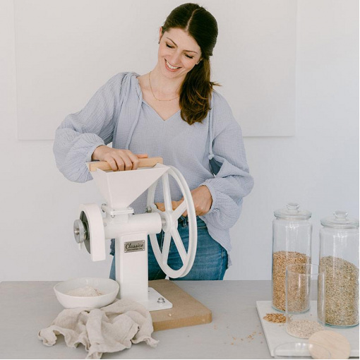 Ручний млин зі сталевими дисками Madalga Classico Сталевий корпус Гігієнічне порошкове покриття Жорна з нержавіючої сталі Розширення кривошипу Легко розуміється для очищення Дуже великий бункер вміщує 1,3 кг (пшениця) Зерновий млин Classico від Madalga — ручний млин зі сталевими дисками. Назва говорить сама за себе, тому що наш ручний млин Madalga Classico - це класика, справжня перлина, яка прикрасить вашу кухню. Він може виробляти значну кількість борошна без електрики. Великий бункер містить 1,3 кг (пшениця). Великий маховик з рукояткою легко рухає млин, тому можна легко виробляти борошно самостійно, не використовуючи електрику. Ручний млин Madalga Classico надзвичайно міцний, має механізм подрібнення з нержавіючої сталі, який може обробляти не тільки всі види зерна, але й усі види насіння та сушену кукурудзу. Ступінь помелу можна регулювати настільки, що можна виробляти навіть крупу, таку як борошно із зелених зерен. Кавові зерна та спеції можна ідеально обробляти за допомогою точного налаштування, тому ваша Madalga Classico перетворюється на млин для зерна, кавомолку та млин для спецій. Заява для любителів автентичної кухні, для любителів робити все своїми руками та для всіх тих, хто все ще шукає щось особливе для своєї заміської кухні. Це справжня перлина, яка прикрасить будь-яку кухню. Ностальгічний та класичний вигляд, поєднання білого кольору та деревних тонів випромінюють особливий шарм. Зерновий млин Classico від Madalga — ручний млин зі сталевими дисками. Назва говорить сама за себе, тому що наш ручний млин Madalga Classico - це класика, справжня перлина, яка прикрасить вашу кухню. Він може виробляти значну кількість борошна без електрики. Великий бункер містить 1,3 кг (пшениця). Великий маховик з рукояткою легко рухає млин, тому можна легко виробляти борошно самостійно, не використовуючи електрику. Ручний млин Madalga Classico надзвичайно міцний, має механізм подрібнення з нержавіючої сталі, який може обробляти не тільки всі види зерна, але й усі види насіння та сушену кукурудзу. Ступінь помелу можна регулювати настільки, що можна виробляти навіть крупу, таку як борошно із зелених зерен. Кавові зерна та спеції можна ідеально обробляти за допомогою точного налаштування, тому ваша Madalga Classico перетворюється на млин для зерна, кавомолку та млин для спецій. Заява для любителів автентичної кухні, для любителів робити все своїми руками та для всіх тих, хто все ще шукає щось особливе для своєї заміської кухні. Це справжня перлина, яка прикрасить будь-яку кухню. Ностальгічний та класичний вигляд, поєднання білого кольору та деревних тонів випромінюють особливий шарм. ХАРАКТЕРИСТИКИ: Сталевий корпус Гігієнічне порошкове покриття Шліфувальні диски з нержавіючої сталі Розширення кривошипу Легко розуміється для очищення Дуже великий бункер вміщує прибл. 1,3 кг (пшениця) Вага з подовжувачем рукоятки 13 кг Висота 39,5 см Глибина з рукояткою 44,5 см/без 28 см Ширина з подовжувачем рукоятки 43,5 см/без 31 см Радіус кривошипу з подовжувачем 26,5 см/без 14 см 1 рік гарантії виробника В комплекті: 1 x ручний млин Madalga Classico 1 х ручка 1 х дерев'яна підставка для рук для завантажувальної воронки 1 х транспортувальна пластина (шаблон для свердління) 1 х інструкція з експлуатації