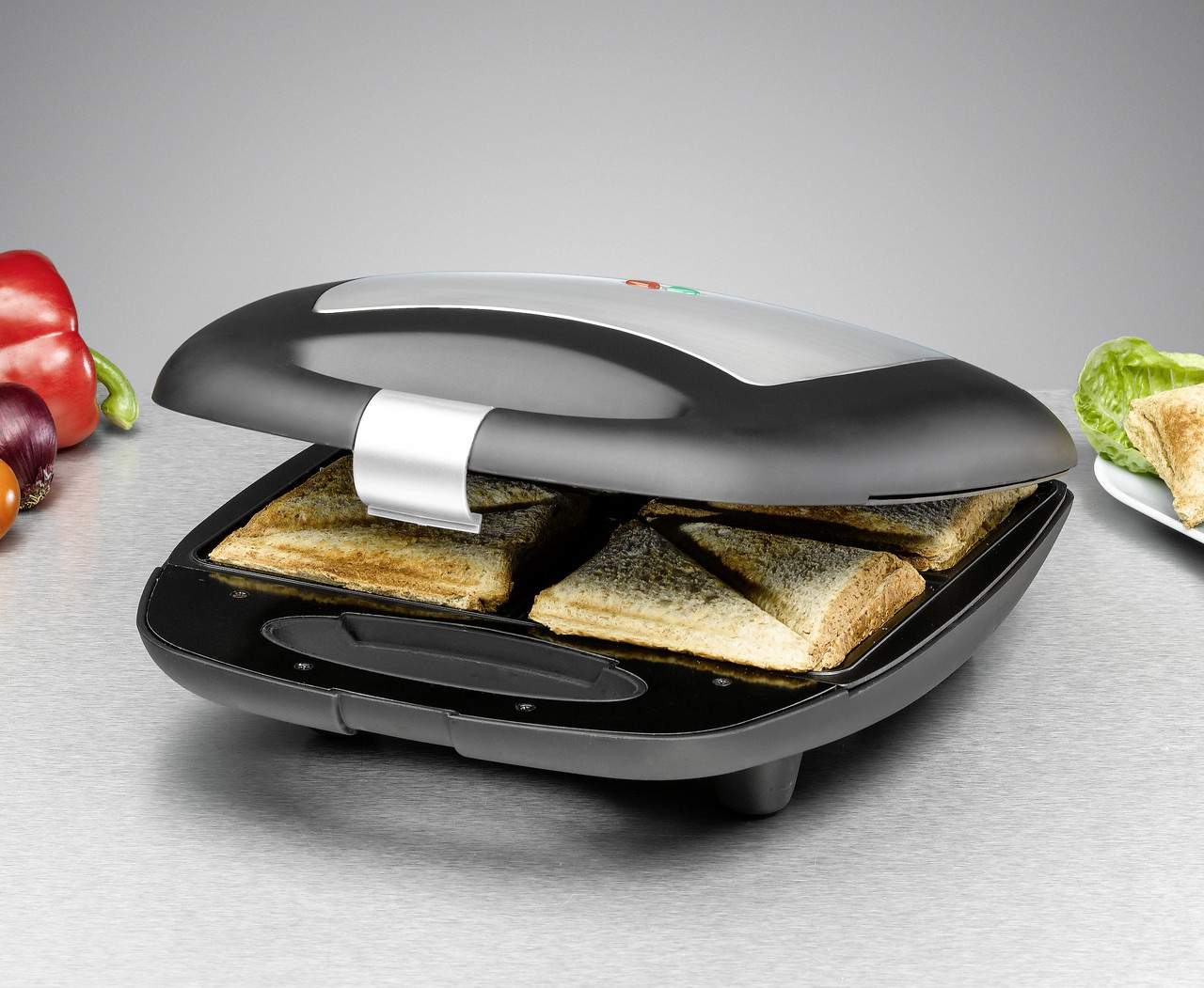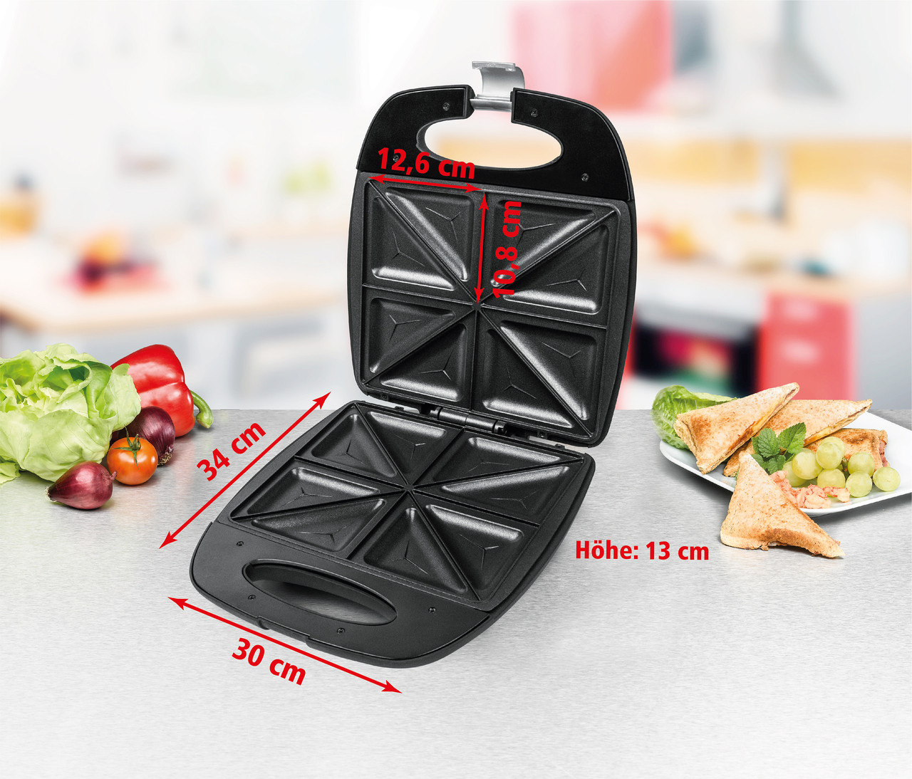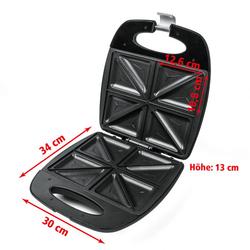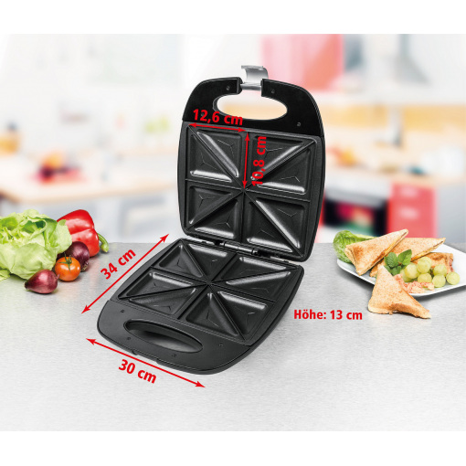Сендвічниця Rommelsbacher ST 1410 Fun for 4 Колір: чорний / нержавіюча сталь Матеріал корпусу нержавіюча сталь / пластик Потужність 230 В 1400 Вт Вага 2,41 кг Розміри 30,00 x 34,00 x 13,00 см Матеріал гриля з антипригарним покриттям Xylan® Plus для легкого очищення Антипригарне покриття Особливі характеристики литі під тиском Виробник: Rommelsbacher Країна: Німеччина Країна виробник: Китай Гарантія: 24 мес Швидкі хрусткі закуски - популярні серед молодих і літніх людей корпус з матового пластика і матової нержавіючої сталі алюмінієві тарілки для тостів, литі під тиском високоякісне двошарове антипригарне покриття Xylan® Plus для кращих результатів і легкого очищення швидкий нагрів, контрольні лампи включення і температури утеплена ручка з замком компактне вертикальне зберігання протиковзкі ніжки на 4 бутерброда Будь то ситний, пікантний, вегетаріанський або солодкий - безліч рецептів завжди пропонує частування. Ідеальний помічник на кухні, щоб швидко збити невеликий гарячий обід, швидко розважити гостей або приготувати невелику закуску між ними. Агрегат швидко нагрівається і дуже простий в експлуатації. Відлиті під тиском алюмінієві пластини для тостів оптимально розподіляють тепло і гарантують чудову хрустку поверхню начинених скибочок тосту. Теплоізольована ручка з фіксатором і протиковзкі ніжки забезпечують безпечне поводження. Антипригарне покриття полегшує очищення. Коли всі нагодовані, прилад можна зберігати в компактному вигляді - у вертикальному положенні в шафі.