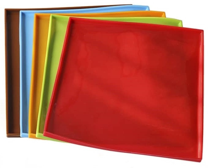 Силіконовий килимок Silicone fruit tray SFT-1240 color silicone fruit tray SFT-1240 red Силіконовий килимок для пастели з бортиком Розміри: 26 x 31 cm, висота 8 мм Матеріал: харчовий силікон (Килимки не токсичні та дозволені до використання у харчовій промисловості. Можна застосовувати в апаратах хлібопекарської та кондитерської промисловостей.) Багаторазове використання, можна мити Температура використання: від -40 °C до +240 °C Силіконовий килимок для пастели SFT-1240 можна застосовувати в різних моделях дегідрататорів! Силіконовий килимок для пастели підходить для приготування смачної пастили, хлібців, печива з мокрих інгредієнтів та сумішей із фруктів, овочів та насіння. Завдяки глянсовій внутрішній поверхні ви легко можете зняти приготовлену пастилу без особливих зусиль. Килимки достатньо промити водою або протерти і вони знову готові до використання. Силікон харчовий підходить для використання в харчовій промисловості та має міжнародні сертифікати якості.