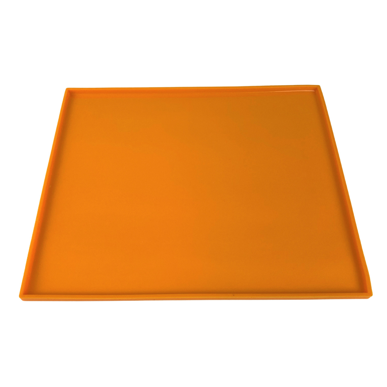 Силіконовий килимок Silicone fruit tray SFT-1240 помаранчевий color silicone fruit tray SFT-1240 orange Силіконовий килимок для пастели з бортиком Розміри: 26 x 31 cm, висота 8 мм Матеріал: харчовий силікон (Килимки не токсичні та дозволені до використання у харчовій промисловості. Можна застосовувати в апаратах хлібопекарської та кондитерської промисловостей.) Багаторазове використання, можна мити Температура використання: від -40 °C до +240 °C Силіконовий килимок для пастели SFT-1240 можна застосовувати в різних моделях дегідрататорів! Силіконовий килимок для пастели підходить для приготування смачної пастили, хлібців, печива з мокрих інгредієнтів та сумішей із фруктів, овочів та насіння. Завдяки глянсовій внутрішній поверхні ви легко можете зняти приготовлену пастилу без особливих зусиль. Килимки достатньо промити водою або протерти і вони знову готові до використання. Силікон харчовий підходить для використання в харчовій промисловості та має міжнародні сертифікати якості.