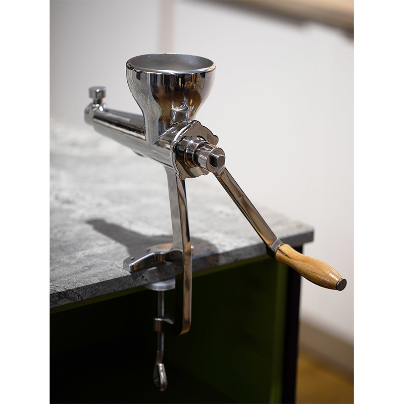 Першокласний кухонний помічник із неіржавкої сталі з великою лійкою працює м'яко, ефективно і так, що ви завжди контролюєте процес.