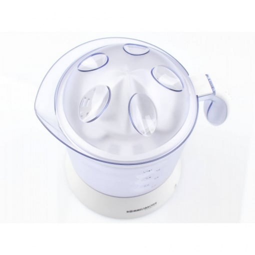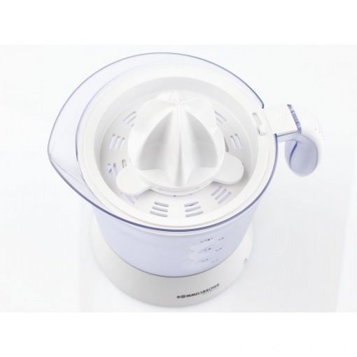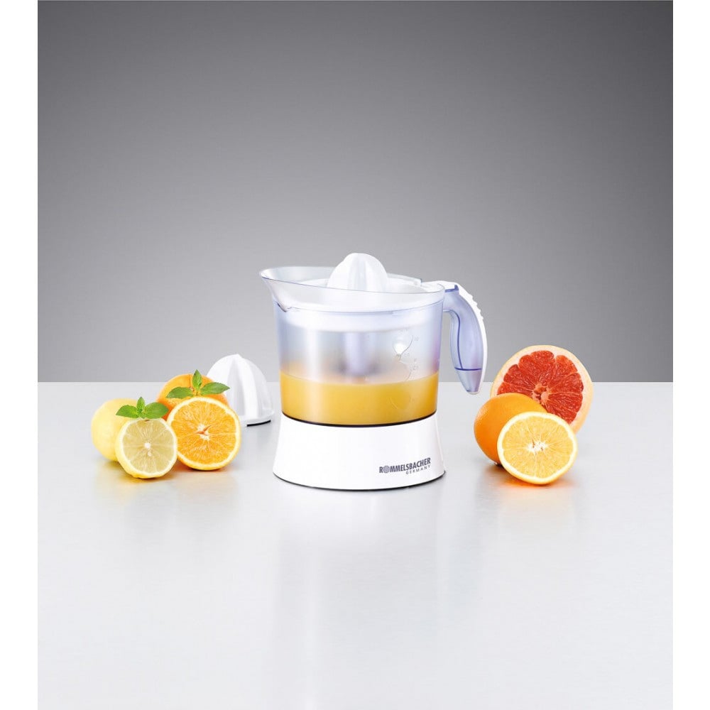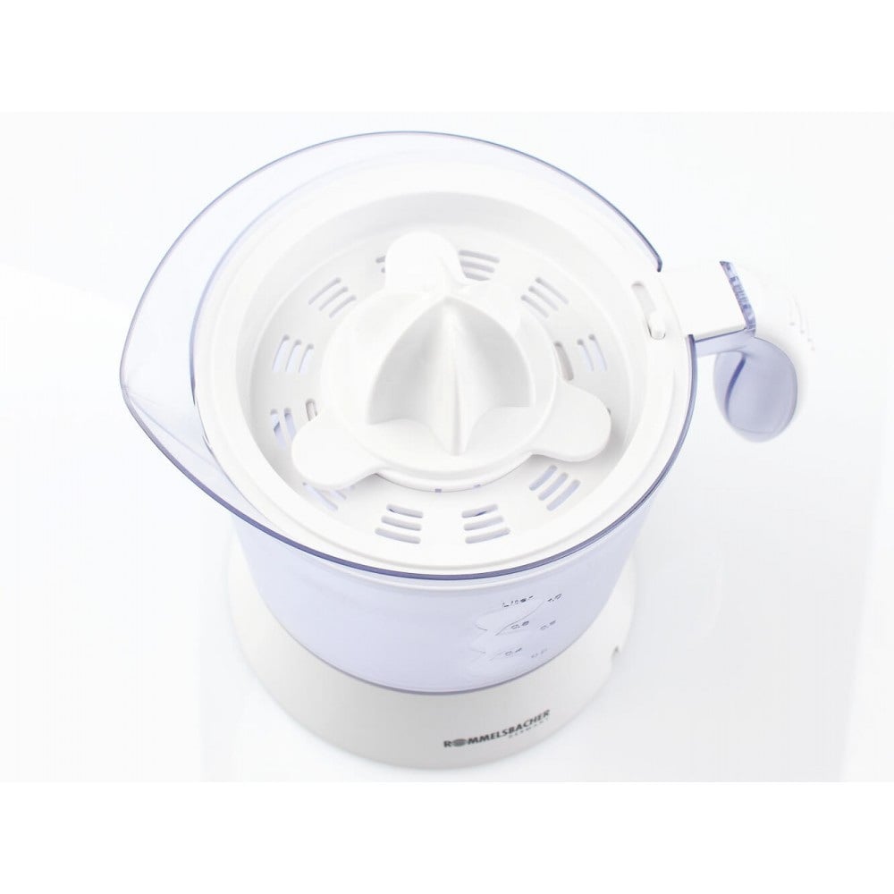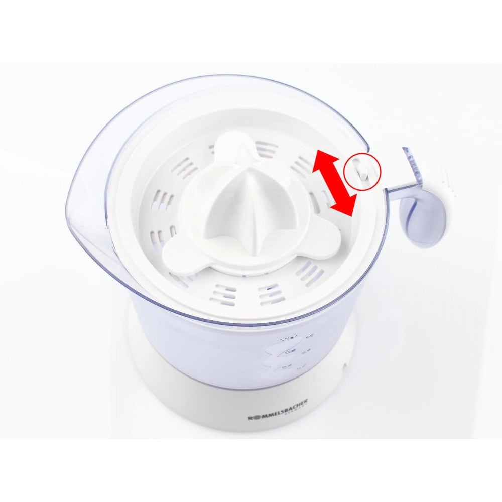 Соковитискач для цитрусових Rommelsbacher ZP 40 Колір білий Потужність 230 В 40 Вт Вага 0,90 кг Габаритні розміри 23,00 х 16,00 х 22,00 см Спеціальні можливості знімний прозорий контейнер для соку на 1 л Гарантія: 24 міс Природно - зміцнюють захисні сили організму завдяки свіжим вітамінам корпус з першокласного пластику, що не вимагає особливого догляду знімний прозорий контейнер для соку на 1 л малошумний мотор легке включення / вимкнення за допомогою прес-конусу регулювання концентрації пульпи вбудований натягувач шнура знімні частини можна мити в посудомийній машині У комплекті: 2 прес-конуси для великих і дрібних фруктів, верхня кришка Вживання вітамінів п'ять разів на день - це як шматок пирога з соковижималкою для цитрусових Rommelsbacher! Завдяки двом різним конусам преса можна витягувати сік із апельсинів, грейпфрутів, а також цитрусових. Достатньо легкого натискання; інше зробить прилад. Правий/лівий привод забезпечує використання кожної краплі. Концентрацію пульпи можна регулювати окремо. Завдяки знімному контейнеру для соку можна легко заповнити склянку. Усі знімні частини можна мити в посудомийній машині.