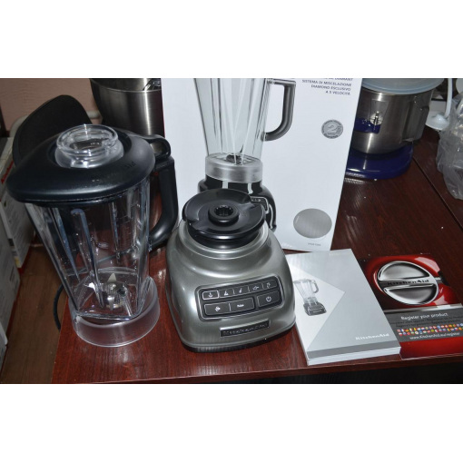 KitchenAid 5KSB1585ECU Diamond стаціонарний настільний блендер 1.75 л, срібний Зручна побутова техніка для кухні полегшує життя кожної господині, і процес приготування перетворюється на справжнє мистецтво. Блендер — прилад простий, але дуже корисний. З ним можна приготувати соуси, супи-пюре, коктейлі та рідке тісто. Він здатний подрібнити будь-які продукти, перемішати їх і навіть роздробити лід. Стаціонарний блендер KitchenAid є незамінним помічником на кухні, і з його допомогою ви зможете створити кулінарні шедеври та здивувати своїх рідних і гостей. Має багато переваг, які дають приладу змогу працювати ефективно. Продумані опції, просте керування й потужний мотор із керуванням Intelli-speed — все це робить блендер незамінним помічником на кухні для багатьох господинь. Завдяки наявності в ньому п'яти швидкостей він зможе перемішати та змішати продуктові інгредієнти, перетворюючи їх на повітряні пюре. Крім головних функцій, творці приладу передбачили в ньому режим дроблення льоду та імпульсний режим, що дає змогу контролювати готовність страви. Якщо ви вирішили купити стаціонарний блендер KitchenAid 5KSB1585ECU — це правильне рішення. Він обладнаний пластиковим містким глечиком об'ємом 1,75 л. Пластик дуже якісний і стійкий до появи подряпин і плям. Прилад обладнаний гнучкою кришкою, яка прилягає щільно, є знімна чаша з мірною шкалою для інгредієнтів. Якісний ніж із неіржавкої сталі дасть змогу переробити найтвердіші продукти в однорідну масу. Функція м'якого старту SoftStartTM не дає розбризкатися рідким інгредієнтам під час приготування. Вам зовсім не обов'язково їздити містом у пошуках цього чудового дивоприладу. Ви зможете купити в інтернеті стаціонарний блендер найвищої якості. Звертайтеся до нас, у нас завжди є в наявності KitchenAid 5KSB1585ECU Diamond стаціонарний настільний блендер 1,75 л, благородного срібного кольору. Згадується ефектний дизайн приладу та непомітний сріблястий колір дають йому ідеально вписатися в інтер'єр будь-якої кухні. За допомогою цього блендера ви зможете приготувати найсмачніші підливки та соуси, добре перемішати продукти для тіста та приготувати різноманітні коктейлі. На наші блендери ціни доступні для кожного покупця. Доставка товару проводиться нашими фахівцями оперативно в усі міста Росії, України, Казахстану, а також в інші країни СНД. Купуйте в нас якісні та стильні блендери бренда KitchenAid, і ви неодмінно оціните функціональність, надійність і чудову роботу вашого нового кухонного помічника! KitchenAid 5KSB1585ECU Diamond стаціонарний настільний блендер 1.75 л, срібний