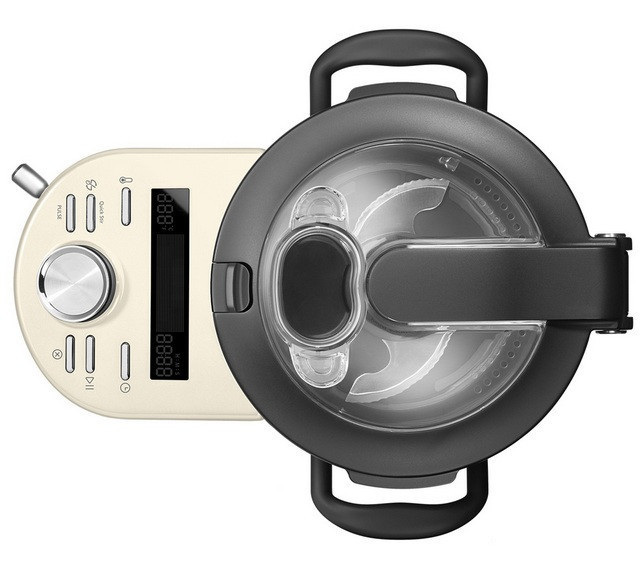KitchenAid Artisan 5KCF0103EAC універсальний кухонний комбайн-процесор Кітчен Ейд, кремовий Всі пристрої, які Ви коли-небудь хотіли собі на кухню, тепер укладені в одному корпусі: комбайн-процесор KitchenAid Artisan, з уже знайомою «тисячею» кулінарних можливостей і під керуванням усього декількох кнопок. Тепер як ніколи легко готувати страви будь-яким ступенем складності натисканням пари кнопок, дотримуючись покрокової інструкції. Адже цей апарат виконує будь-які необхідні автоматизовані процеси та процедури, залишаючи позаду всі аналогічні пристрої в плані обладнання аксесуарами. Всі переваги очевидні: легкий процес приготування будь-яких страв; більше смачної їжі до столу; більше вільного часу для Вас! - Багатофункціональний апарат KitchenAid Artisan IKCF0103EAC : — найновіший і найнадійніший помічник на кухні для приготування вишуканих страв, економії часу та ресурсів. Він виконує функції, як-от: шатківниця, нарізання, відбивання, подрібнення, перемішування, випікання, тушкування, приготування на парі, смаження; - 6 автоматичних режимів приготування: варити, смажити, тушкувати, готувати на парі, перемикання та комбінування програм; - Безплатний застосунок із рецептами (для iOS і Android) з покроковими поясненнями як класичних, так і повсякденних рецептів; - Дно з жароміцного алюмінію забезпечить точне (140?) і рівномірне нагрівання; - литі металеві кнопки, ручки та поверхні надають неповторний зовнішній вигляд. Деталі, що йдуть у комплекті до KitchenAid Artisan IKCF0103EAC: - унікальна каструля з неіржавкої сталі на 4,5 л з ергономічними ручками; - лезо Multiblade для каструлі, призначене для подрібнення великої кількості інгредієнтів; - лопатеня StirAssist: для акуратного та рівномірного перемішування інгредієнтів; - віночок для збивання; - кришка на шарнірах (відкидним і пересувним) з можливістю закидання інгредієнтів під час приготування; - низька та висока каструлі з окремою кришкою для приготування на парі; - кошик для приготування на парі; - ніж для замішування; - мінічаша з лезом Multiblade, для дрібного подрібнення; — мірна склянка (50-100 мл). KitchenAid Artisan IKCF0103EAC універсальний кухонний комбайн? процесор Кітчен Ейд, кремовий