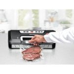 Вакуумний пакувальник Rommelsbacher VAC 285 VACUUM SEALER VAC 285 Колір: чорний/сріблястий Вихідна потужність 230 В 110 Вт Вага предмета 2,05 кг Розміри 42,50 х 18,50 х 12,00 см Потужність насоса 9 Підключення шланга Ширина плівки до 30 см. У комплекті: 10 пакетів з фольги, ріжучий ніж, вакуумна трубка Виробник: Rommelsbacher Країна: Німеччина Гарантія: 24 міс однією рукою – ефективне та безпечне підходить для тривалої роботи без проміжних пауз високопродуктивний поршневий насос, прибл. 9 л/хв. повністю автоматична вакуумна запаювання за один робочий крок, 2 цикли запаювання можливе індивідуальне вакуумування з ручною герметизацією міцний герметизуючий шов завтовшки 2,5 мм для фольги шириною до 30 см і для вакуумування контейнерів порт шланга індикація стану робочого процесу вбудований натягувач шнура, 4 гумові ніжки, що не ковзають У комплекті: 10 пакетів з фольги (5 штук 22 x 30 см і 5 штук 28 x 35 см), ніж, вакуумний шланг. Всмоктування повітря на 97% зберігає продукти свіжими до 5 разів довше. Для щоденного використання в малих та великих домашніх господарствах. Для рибалок та мисливців, для напівпрофесійного гастрономічного використання, кулінарія, тенденція відзначеної нагородами кухні Цей незвичайний вакуумний пакувальник підкорює своїми продуманими характеристиками. Велика ручка дозволяє зручно керувати однією рукою, прилад можна легко відкривати та безпечно закривати. Незалежно від того, чи живете ви у маленькому чи великому будинку, вакуумний пакувальник можна використовувати гнучко, а також він підходить для довгострокової експлуатації. Урожай із грядки можна швидко запакувати. Високопродуктивний насос витягує до 97 % повітря зі спеціальних вакуумних пакетів, а потім повністю автоматично запечатує їх міцним швом лише за один робочий крок. З двома встановлюваними проміжками часу запечатування процедура вакуумування може бути адаптована індивідуально до харчового продукту, що обробляється. Для особливо чутливих до тиску продуктів доступна функція ручного вакуумування та запечатування. Оглядове віконце особливо зручне, тому що можна перевірити правильність положення мішка в приладі. За допомогою функції Behälter vakuumieren (вакуумування контейнера) навіть чутливі до тиску або рідкі продукти можна упаковати в спеціальні вакуумні контейнери і таким чином зберегти їх свіжими протягом тривалого часу. Вакуум продовжує термін зберігання продуктів у три-п'ять разів, тому цей практичний прилад не повинен бути відсутнім у жодному будинку! Наша порада: прилад підходить для приготування страв у режимі Sous Vide Cooking. Навіть чутливі до тиску або рідкі продукти можуть бути упаковані під вакуумом у спеціальні вакуумні контейнери і таким чином можуть зберігатися свіжими протягом тривалого часу.