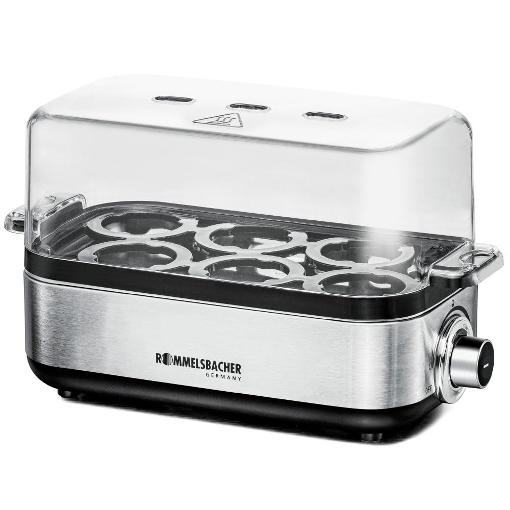 Яйцеварка Rommelsbacher ER 600 Колір нержавіюча сталь Матеріал корпусу нержавіюча сталь Потужність 230 В 400 Вт Вага 0,70 кг Розміри (Ш/Д/В) 22,80 x 10,50 x 13,10 см Максимальна кількість яєць 6 Регульована ступінь готовності з електронним контролем часу приготування Звуковий сигнал наприкінці приготування У комплекті: Мірна склянка, утримувач яєць, вставка для 2 яєць-пашот Виробник: Rommelsbacher, Німеччина Країна виробник: Китай Гарантія: 24 міс Шикарний дизайн - ідеальний результат Привабливий корпус з нержавіючої сталі , що не потребує особливого догляду Поворотна ручка для налаштування ступеня готовності за часом з електронним контролем часу приготування Нагрівальна чаша з нержавіючої сталі, що не потребує особливого догляду. Знімний лоток для яєць на 1-6 яєць Вставка для варіння яйця-пашот на 2 яйця, яку легко чистити Звуковий сигнал після закінчення часу приготування Захист від перегріву та сушіння до кипіння Світлодіодна контрольна лампа Знімна прозора кришка Вбудований намотувач кабелю У тому числі: За допомогою цього привабливого приладу для невеликого будинку ви можете надійно приготувати до шести яєць для сніданку. Високоякісні матеріали та проста концепція управління також переконують прямо на столі для сніданку. Приготування регулюється за часом з тією ж кількістю води, тому можна швидко знайти правильне налаштування для бажаного ступеня готовності. Від м'якого до твердого, індивідуально за допомогою практичної поворотної ручки. Час приготування контролюється електронікою, і після закінчення лунає звуковий сигнал; Потім повністю приготовані яйця можна швидко та безпечно вийняти, включаючи піддон для яєць, охолодити та подати на стіл. Яйця-пашот також можна приготувати в цьому пристрої за допомогою практичної вставки для приготування, в якій можна готувати два яйця-пашот одночасно. Завдяки вставці для відварювання пристрій можна використовувати навіть як компактний відпарювач. Вбудований захист від перегріву, проста у догляді чаша для підігріву з нержавіючої сталі, мірна чашка з ножем для яєць та практичний пристрій для намотування кабелю – додаткові переваги цього першокласного помічника на кухні.